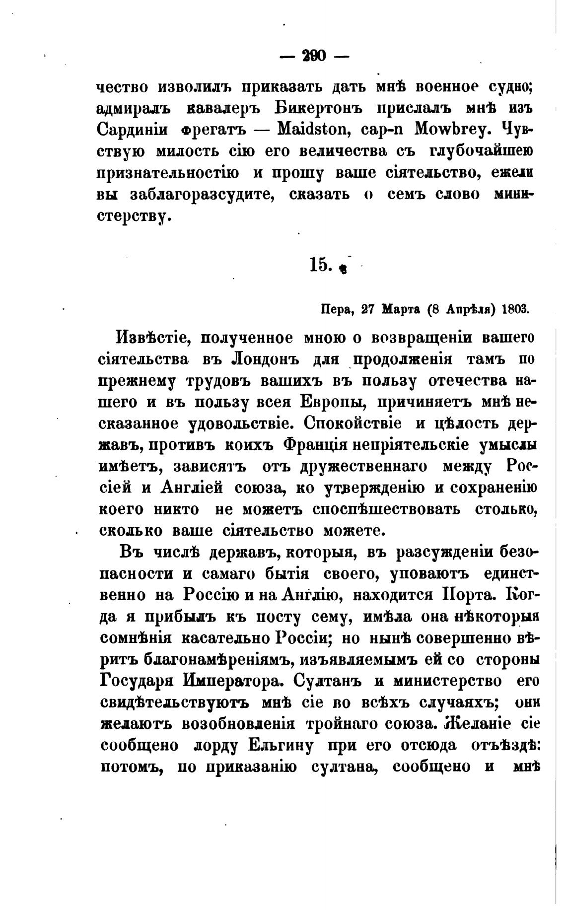 Пера, 27 Марта (8 Апр•ья) 1803.