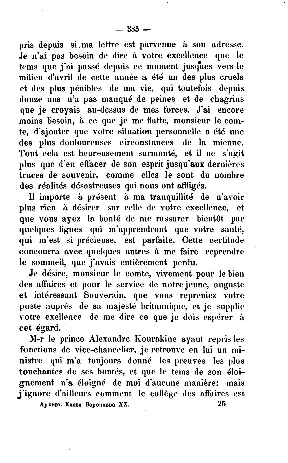M-r le prince Alexandre kourakine ayant repris les