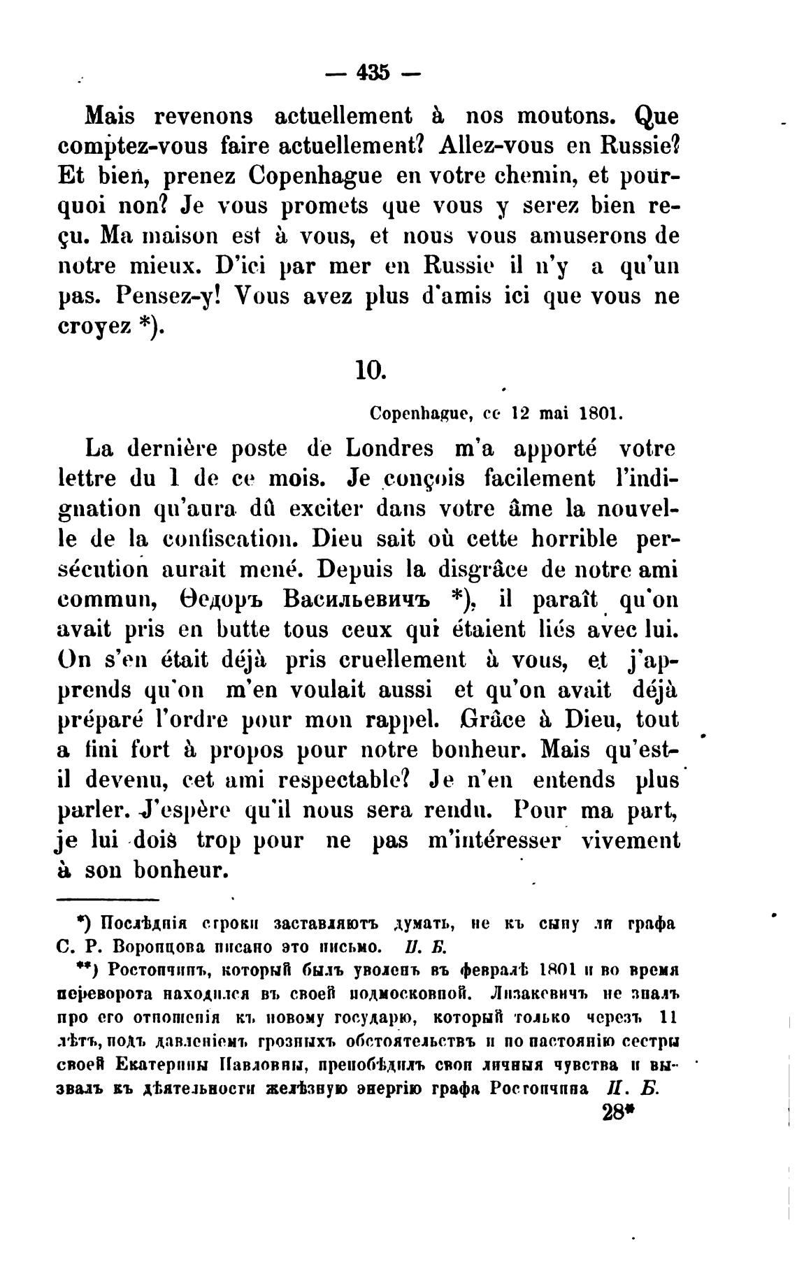 “ ) Ростопчипъ, который быль уволенъ въ феврал1; 1801 н во время