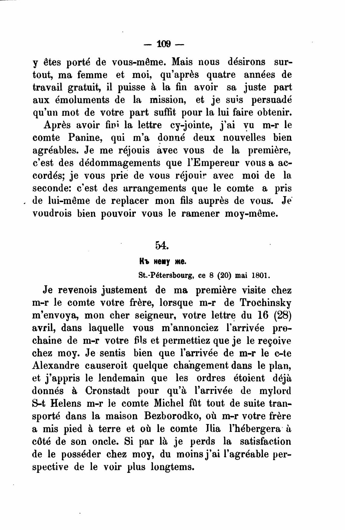 St.-P6tersbourg, се 8 (20) mai 1801.