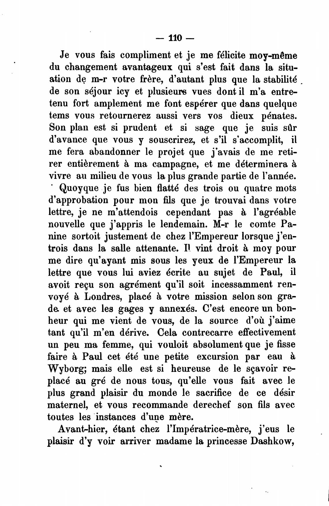plaisir d'y voir arriver madame la princesse Dashkow,