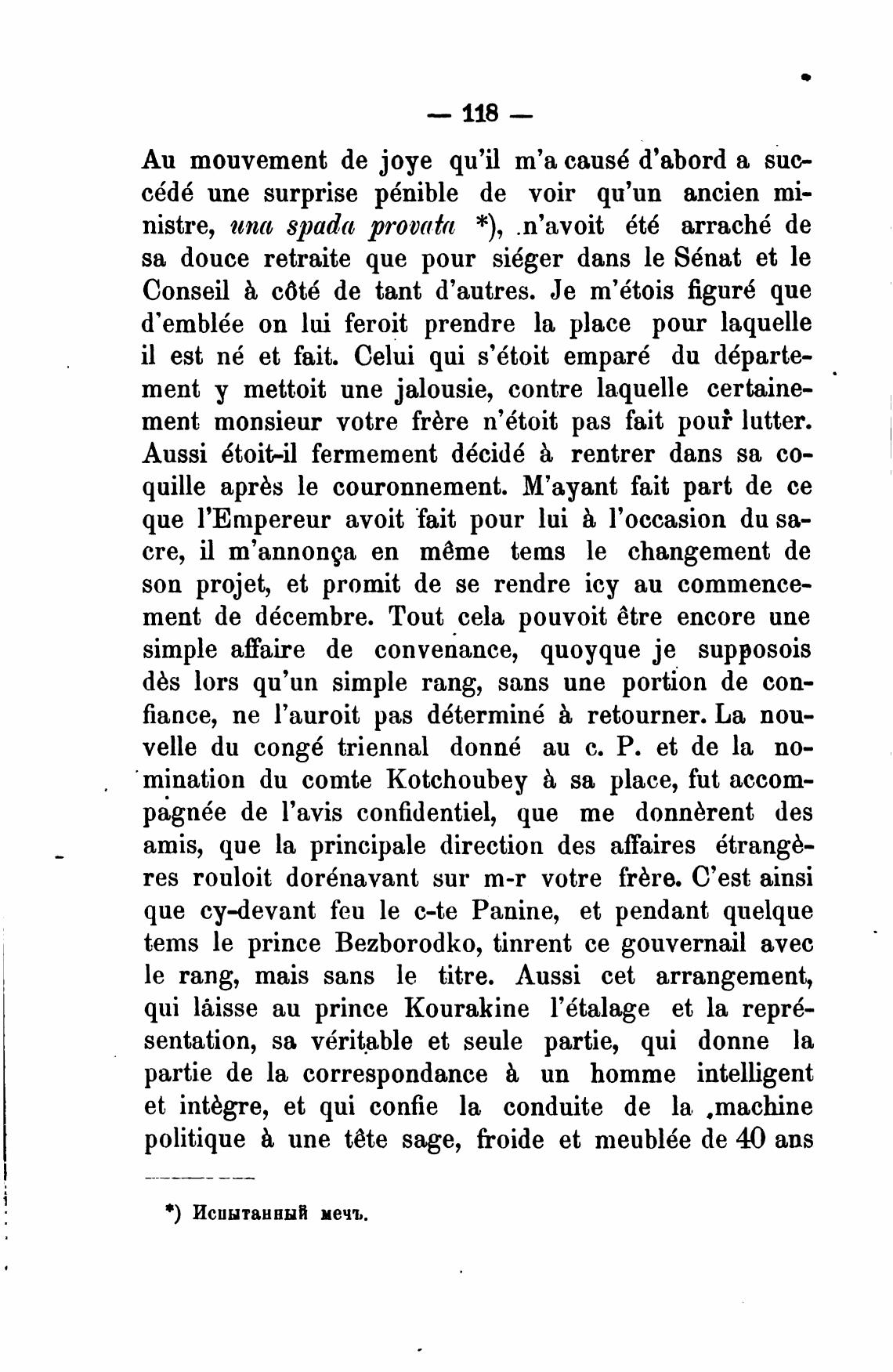 que cy-devant feu le c-te Panine, et pendant quelque