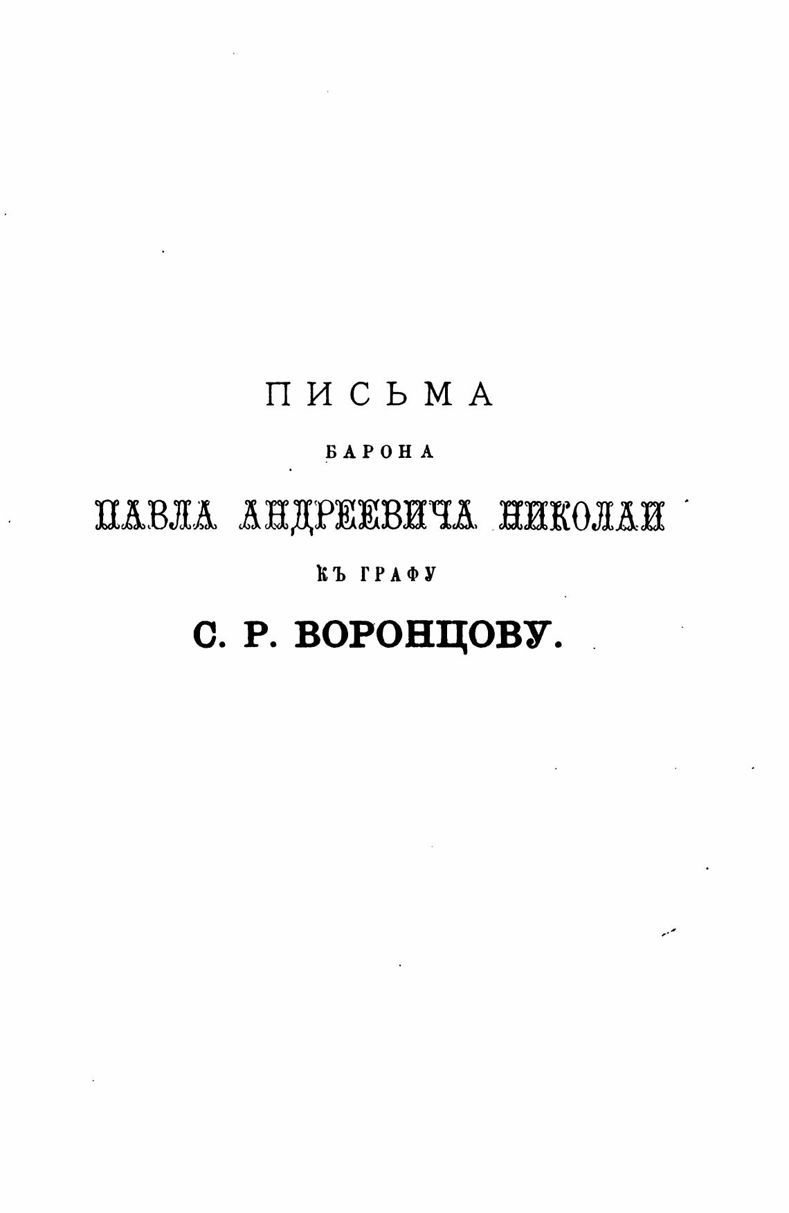 Архив князя Воронцова. Кн. 22. Бумаги графов А. Р. и С. Р. Воронцовых. Переписка с баронами А. Л. и П. А. Николаи. - Бартенев П. И.
