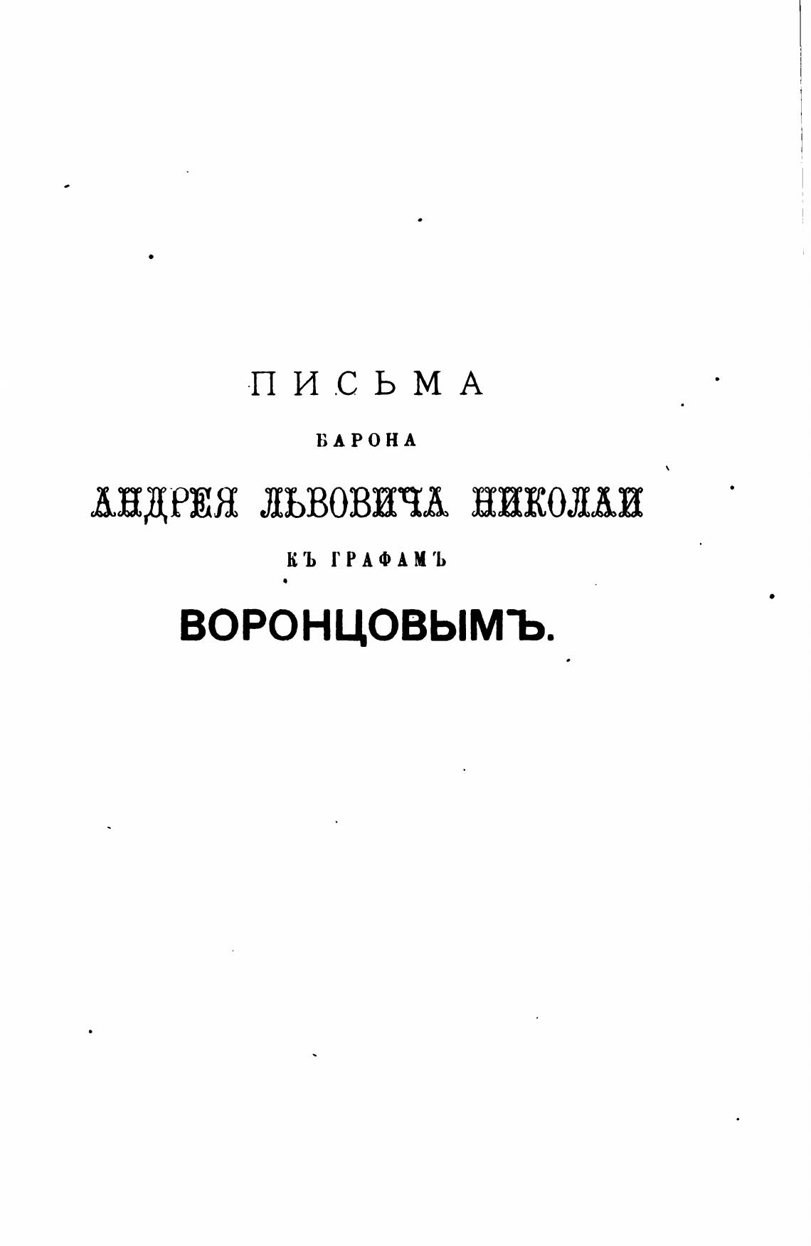 Архив князя Воронцова. Кн. 22. Бумаги графов А. Р. и С. Р. Воронцовых. Переписка с баронами А. Л. и П. А. Николаи. - Бартенев П. И.