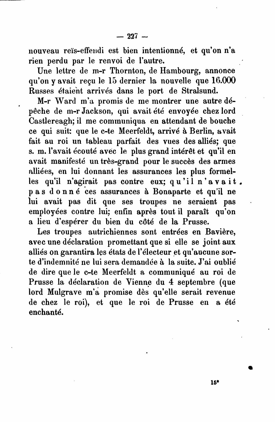 Castlereagh; il те communiqua еп attendant de bouche