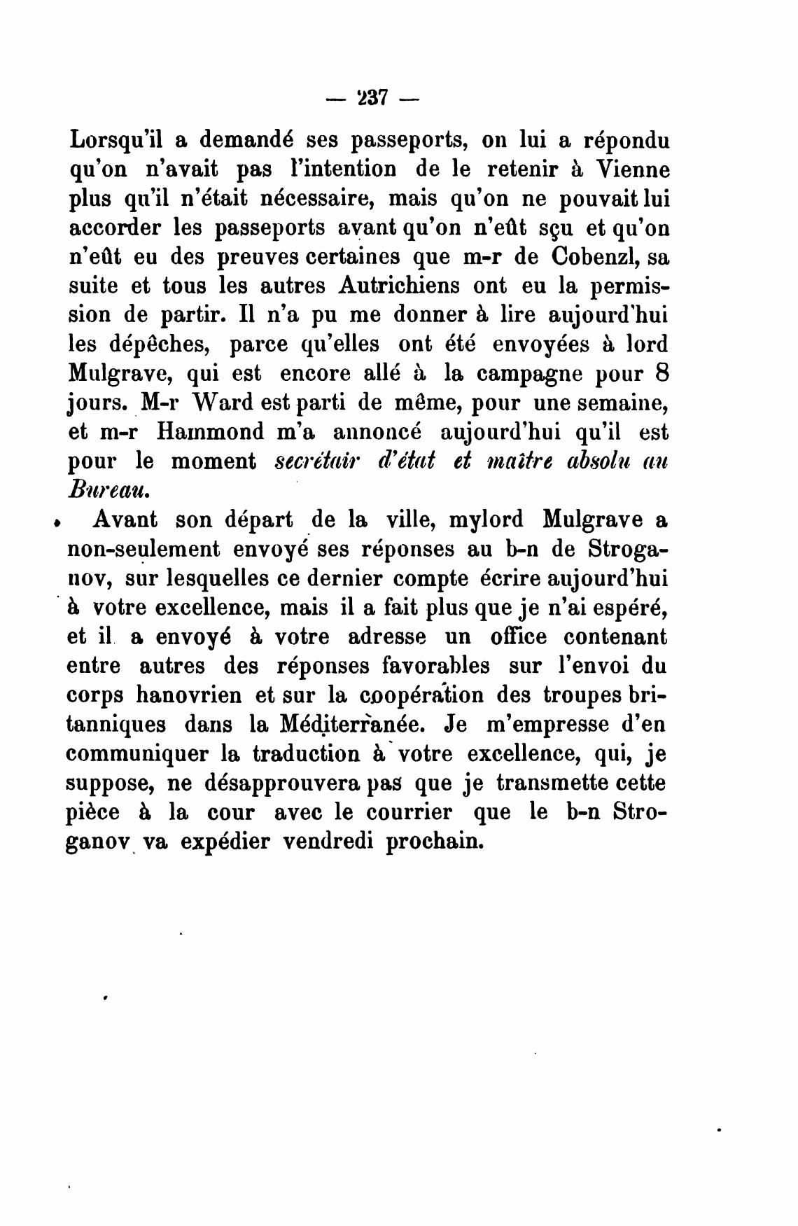 Avant son d6part de la ville, mylord Mulgrave а