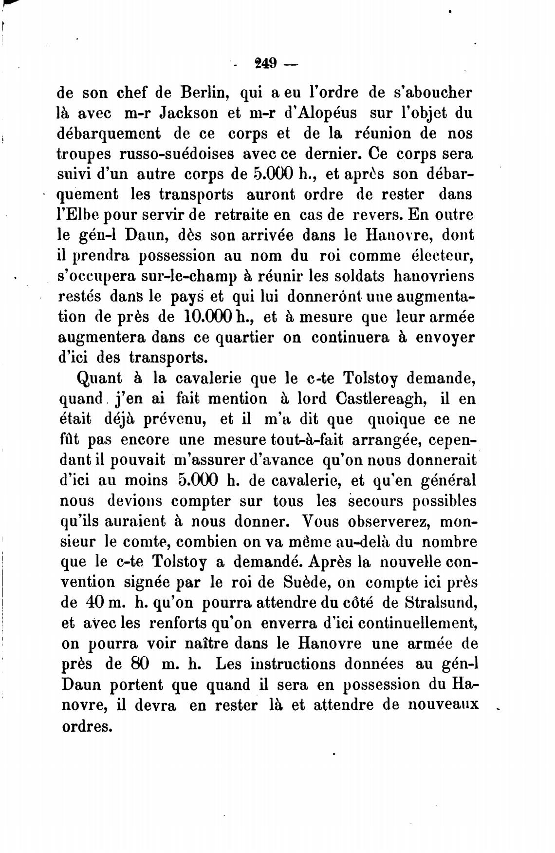 Quant la cavalerie que le c-te Tolstoy demande,