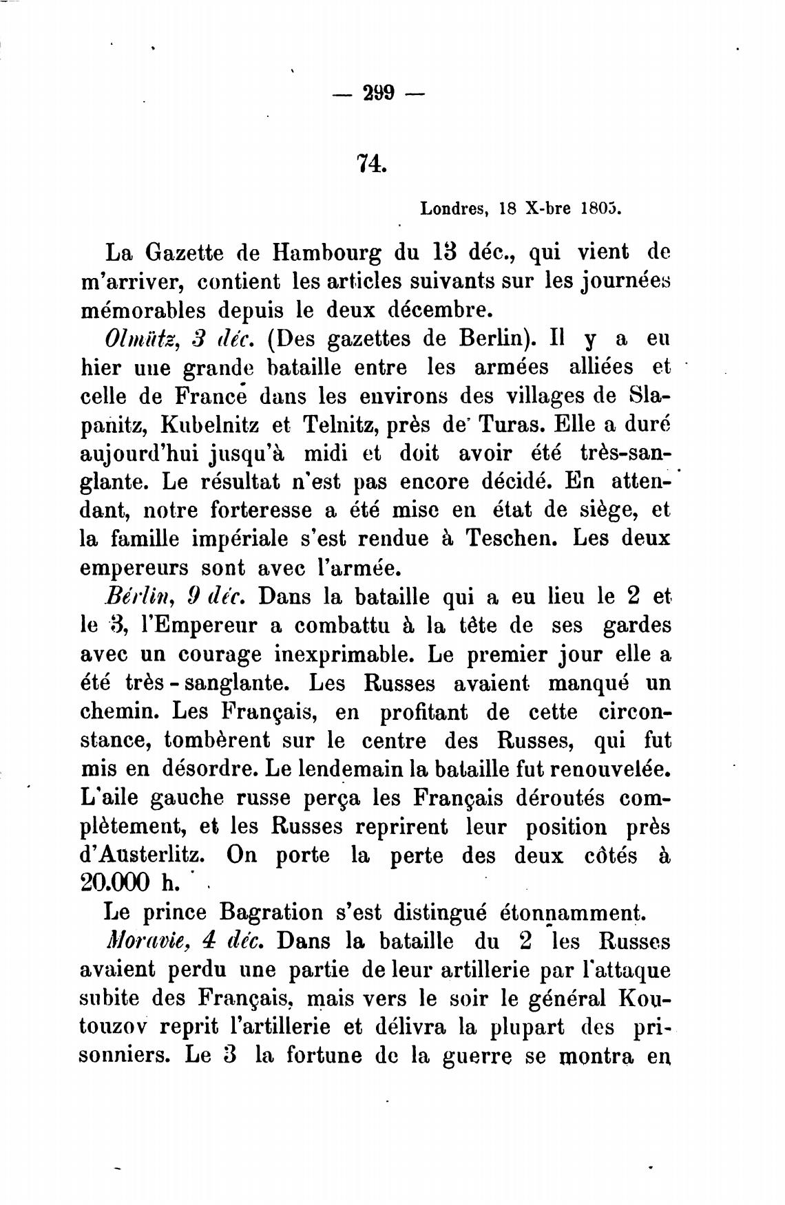 d'Austerlitz. Оп porte la perte des deux c6t6s