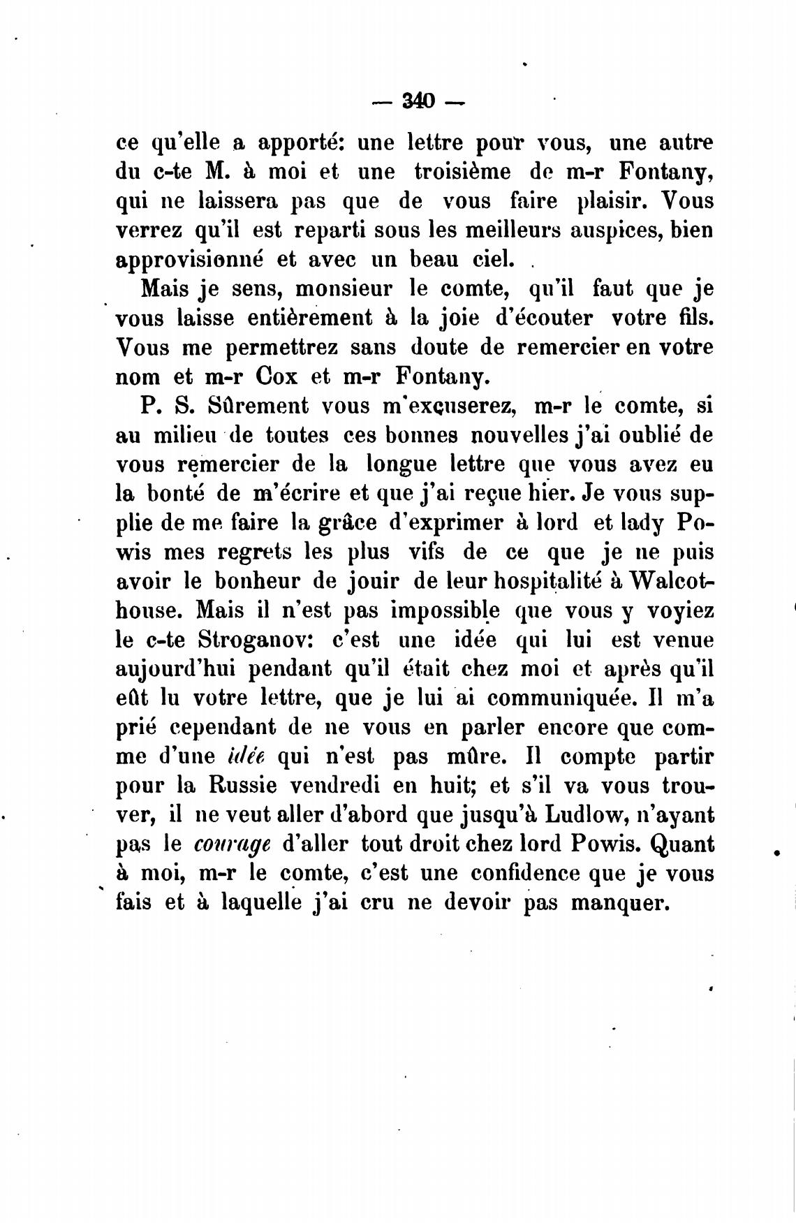 Р. S. vous m•exeuserez, m-r le comte, si