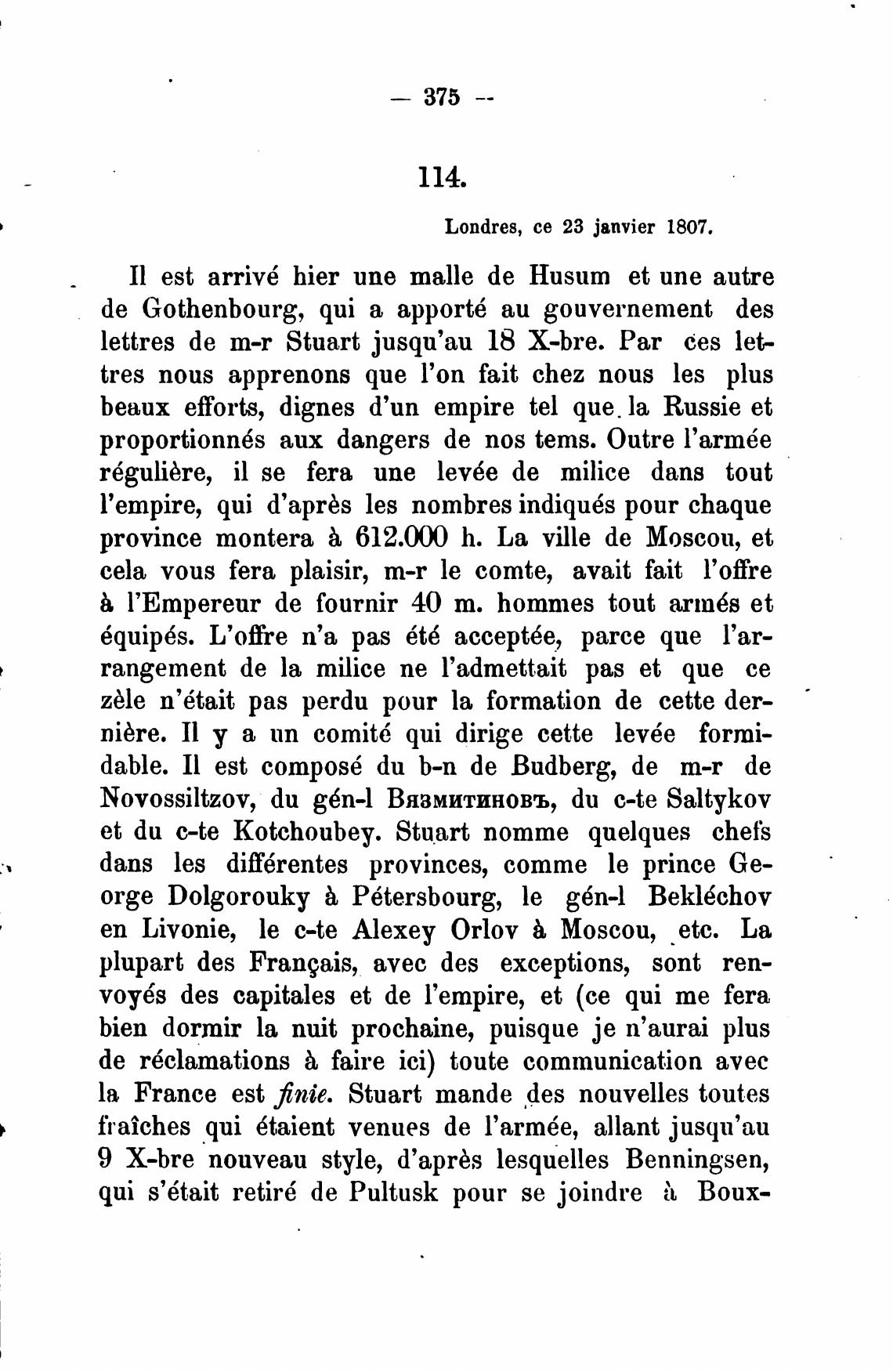 Londres, се 23 janvier 1807.