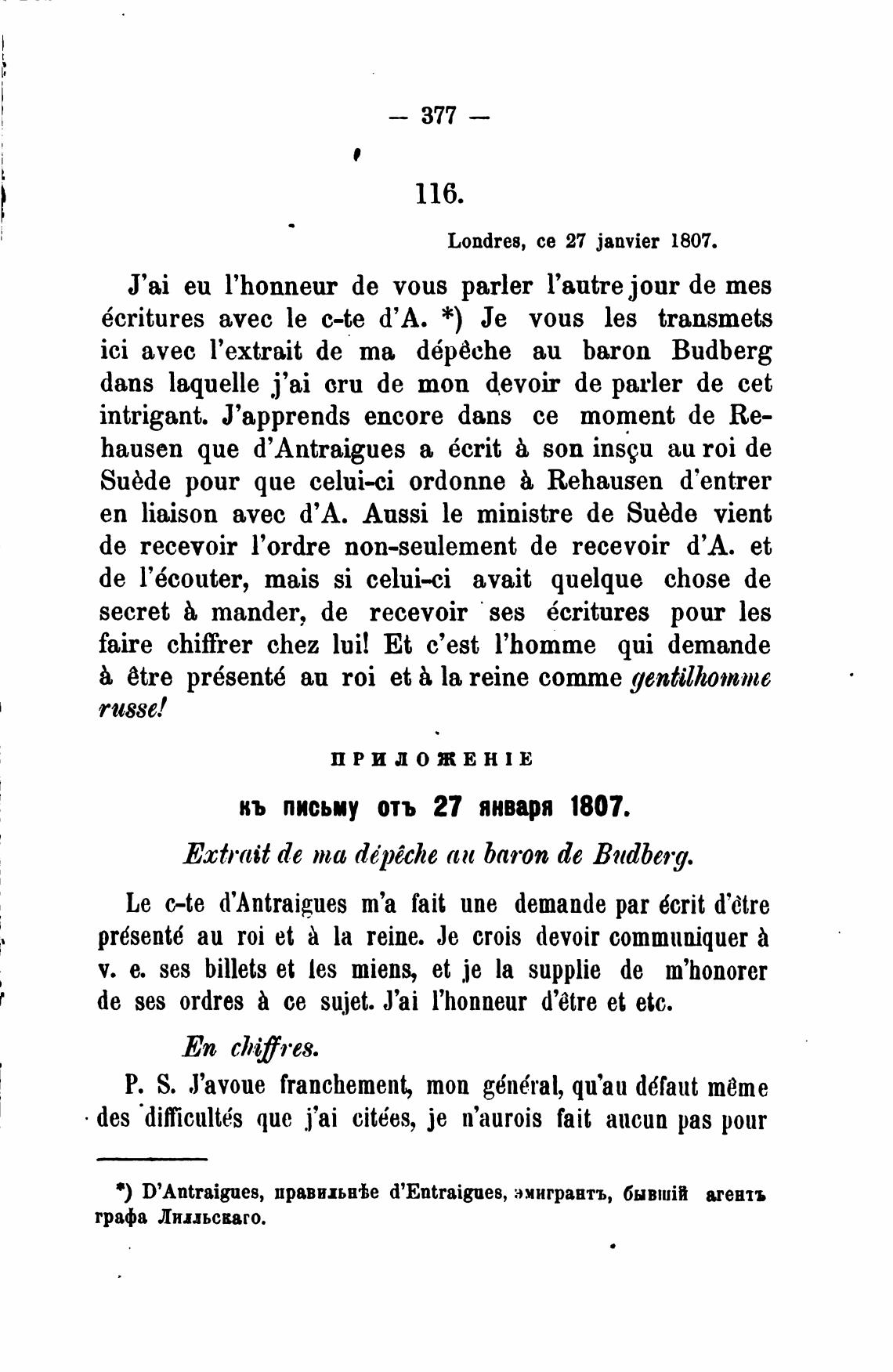 Londres, се 27 janvier 1807.