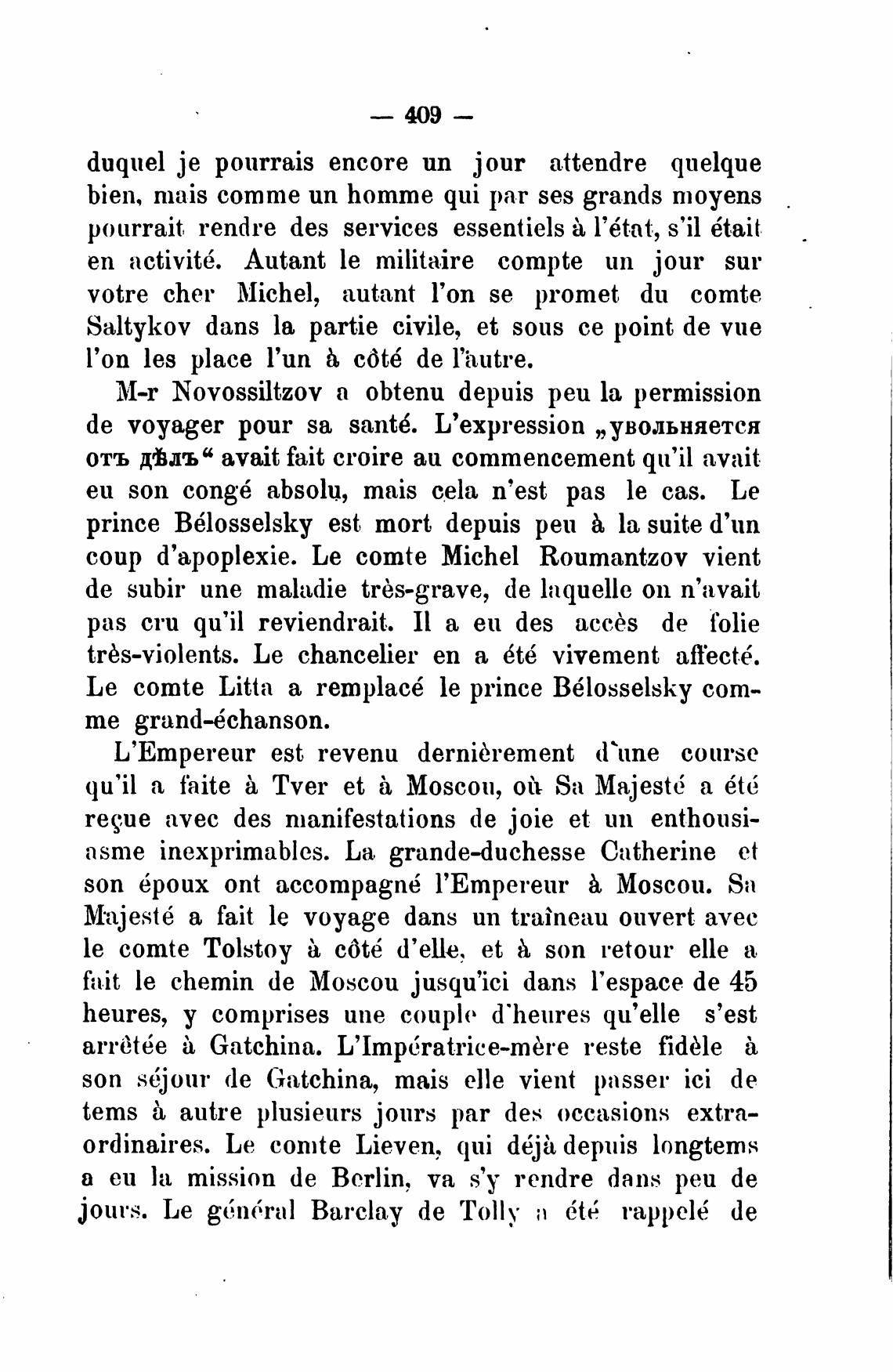 M-r Novossiltzov а obtenu depuis реи la permission