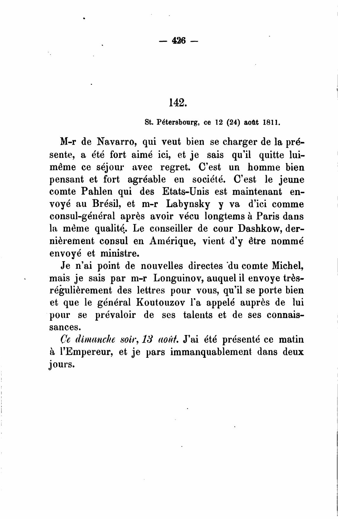 St. P6tersbourg, се 12 (24) aoat 1811.