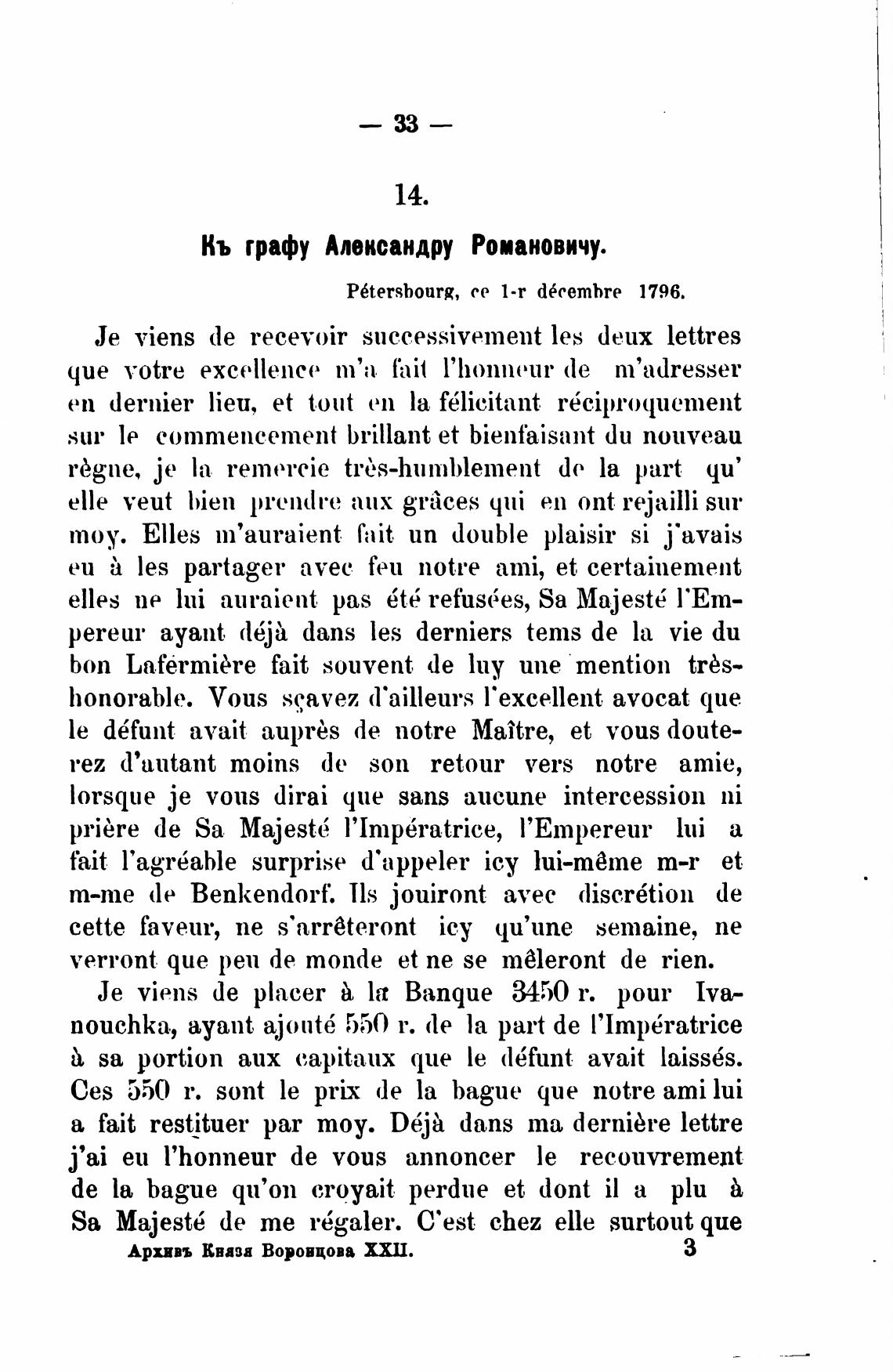 P6tershonrg, се 1-r d6cembre 1796.