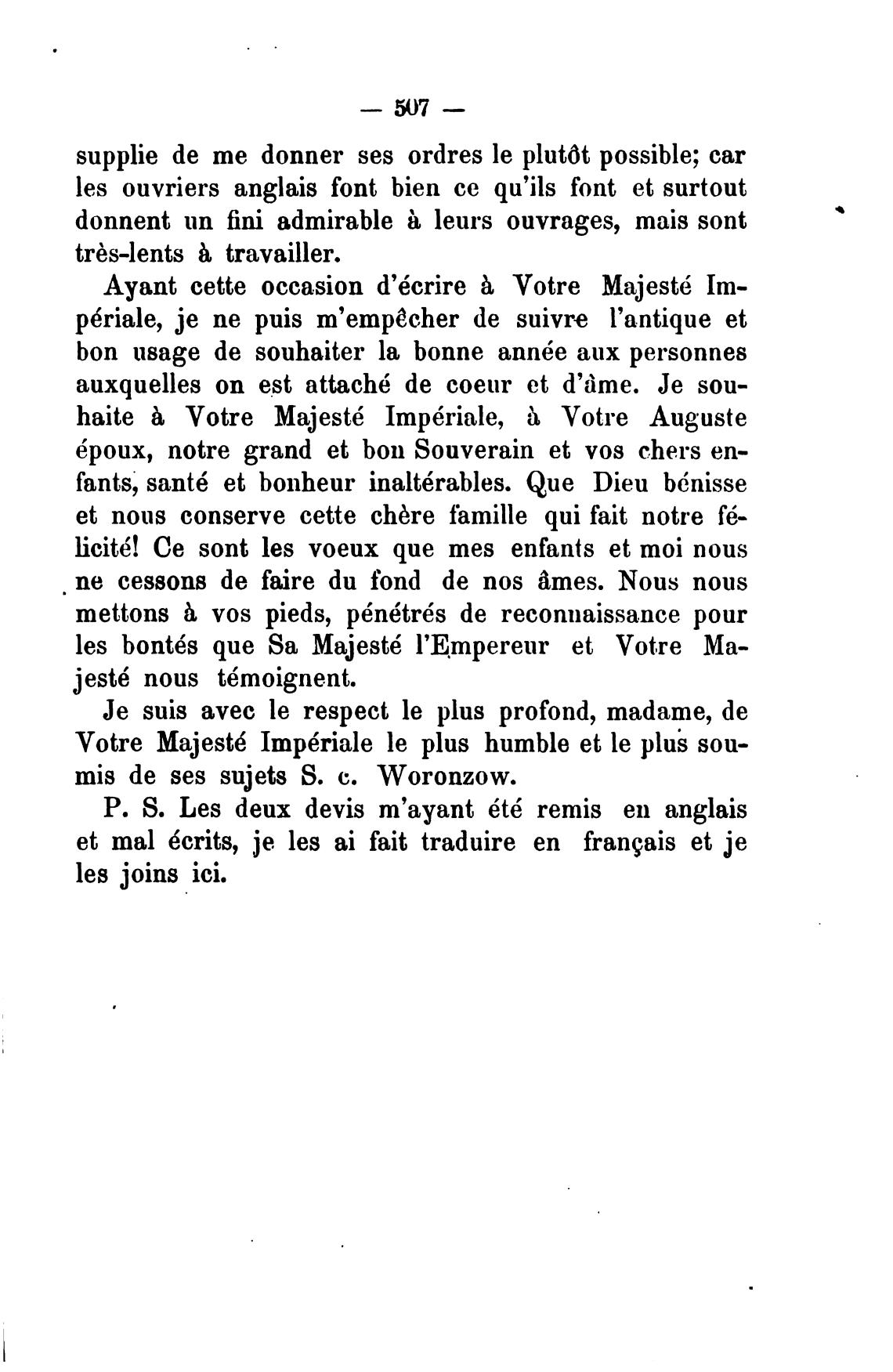 mis de ses sujets S. с. Woronzow.