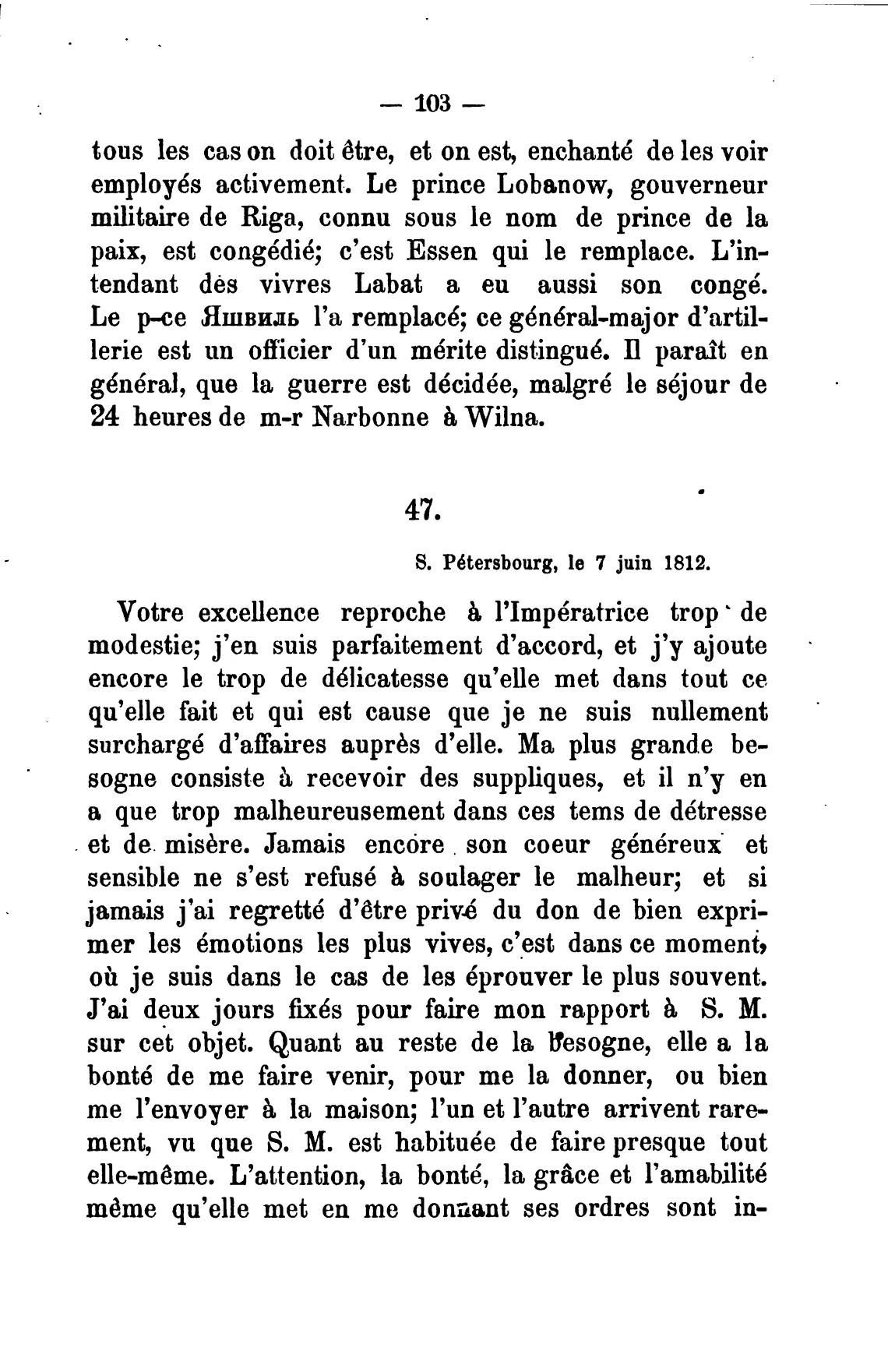 S. P6tersbourg, le 7 juin 1812.