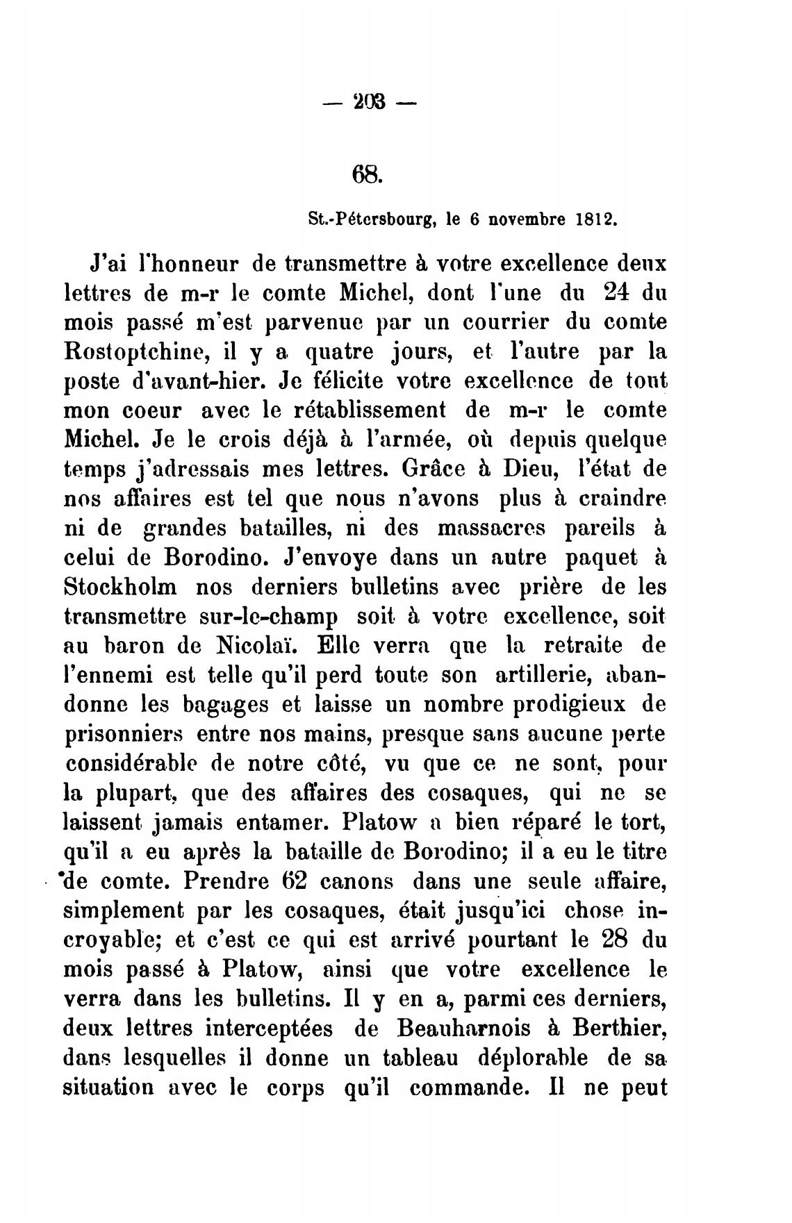 St.•P6torsbourg, le 6 novembre 1812.