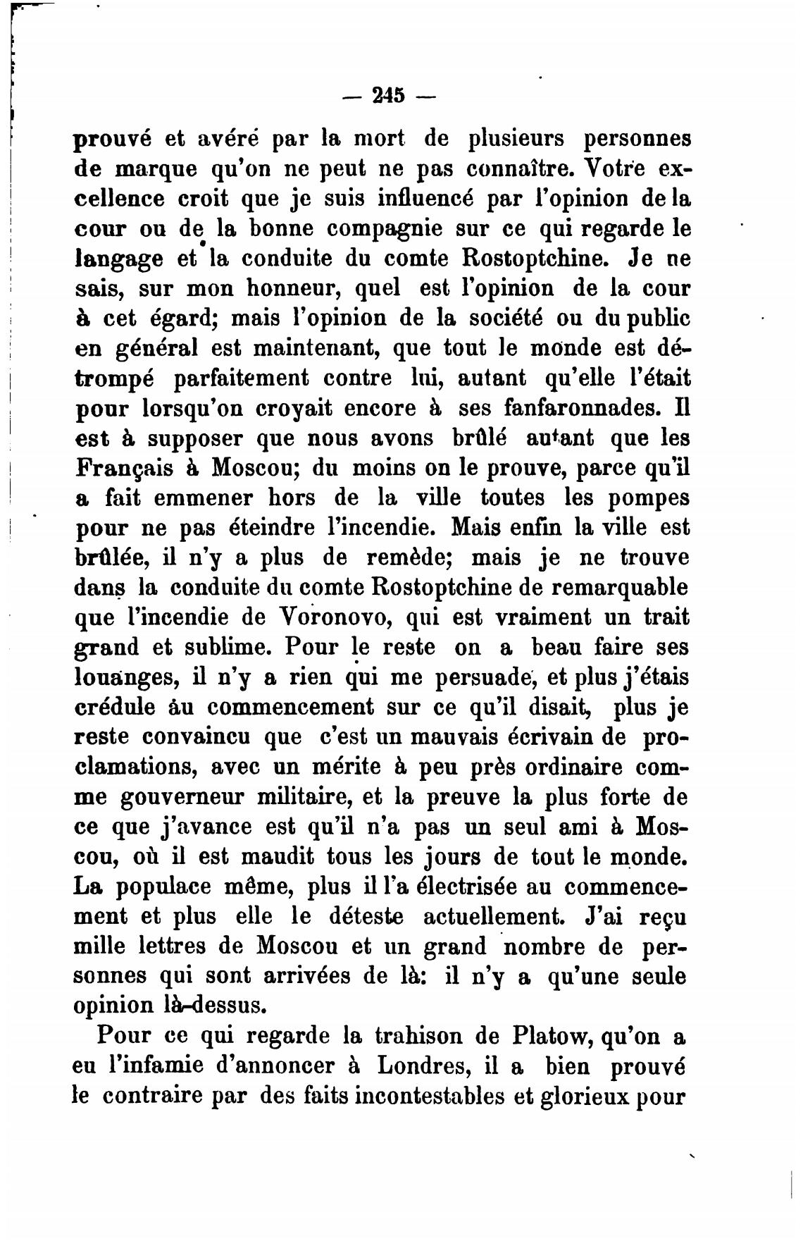 langage et la conduite du comte Rostoptchine. Је пе