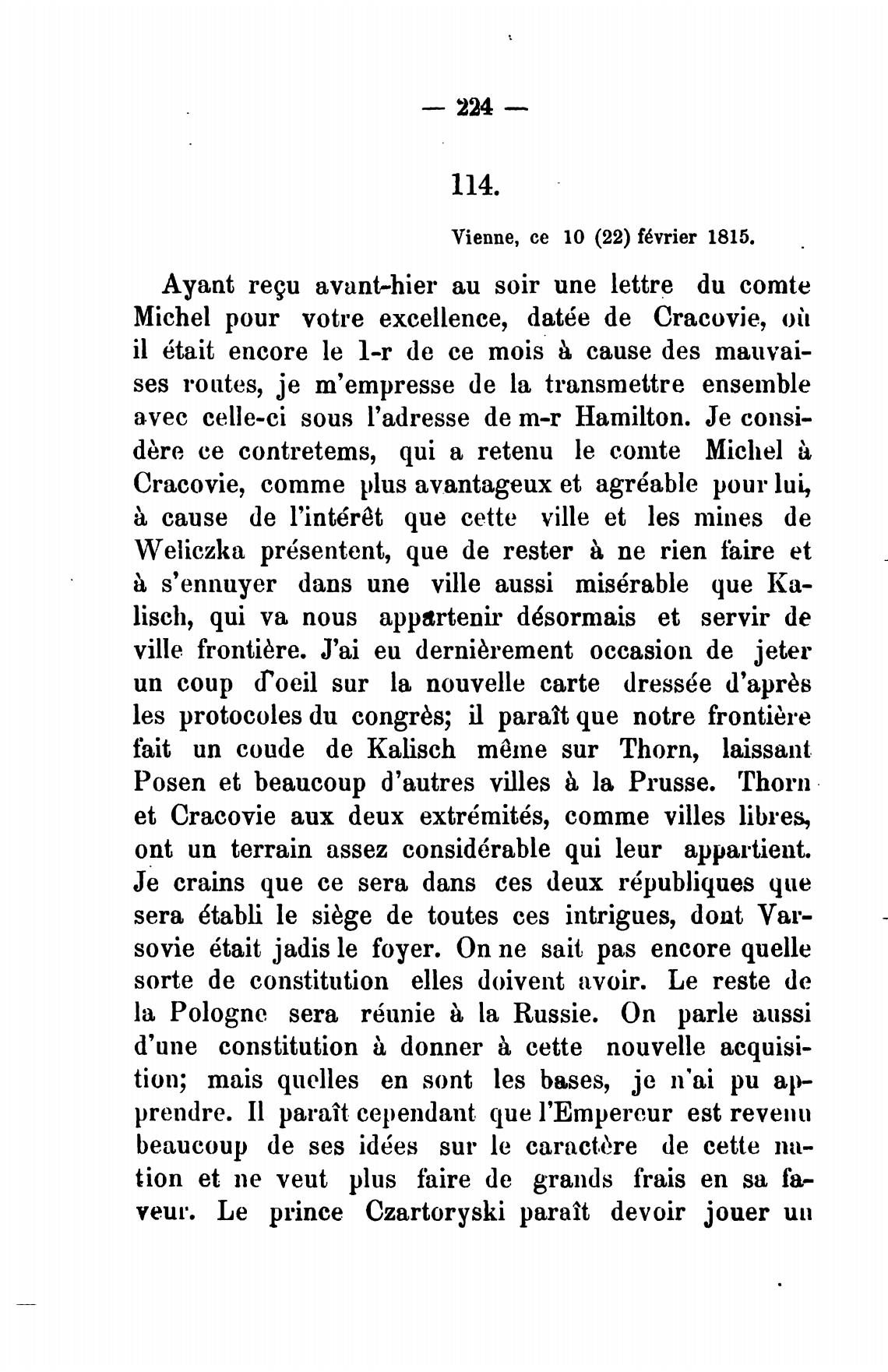Vienne, се 10 (22) f6vrier 1815.