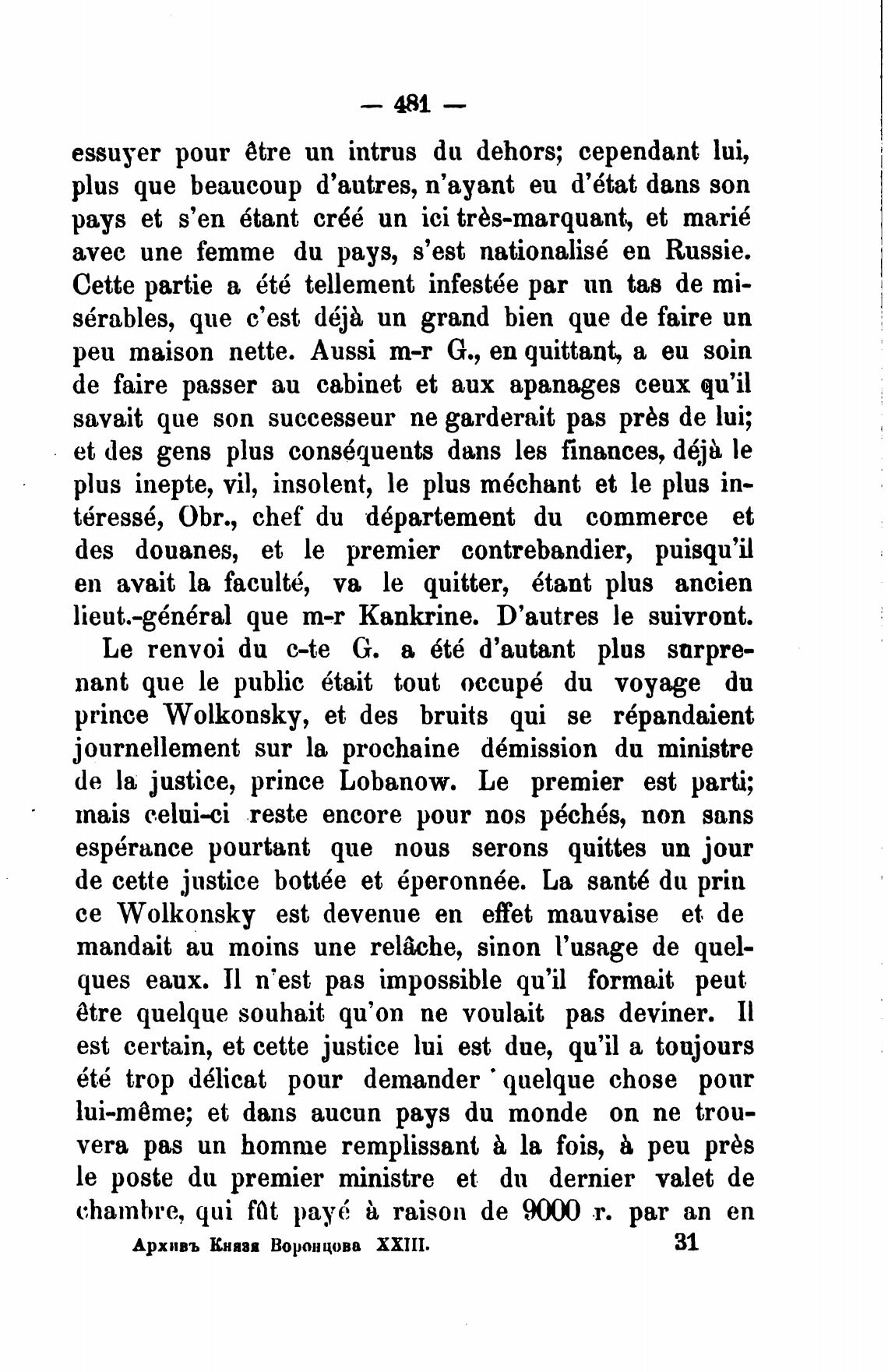 prince Wolkonsky, et des bruits qui se r6pandaient