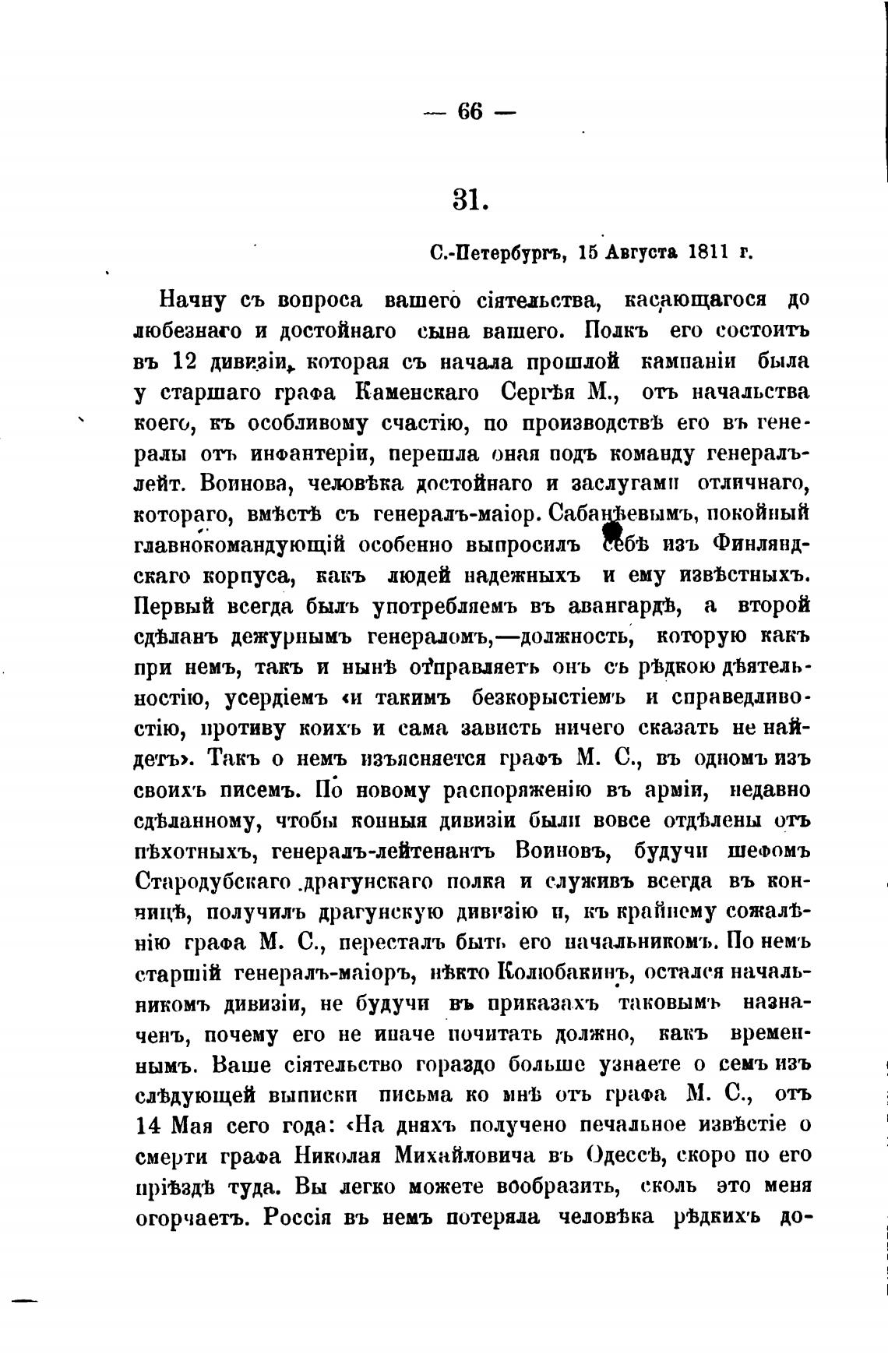 слвдующей выписки письма ко мн'ь отъ графа М. С., отъ