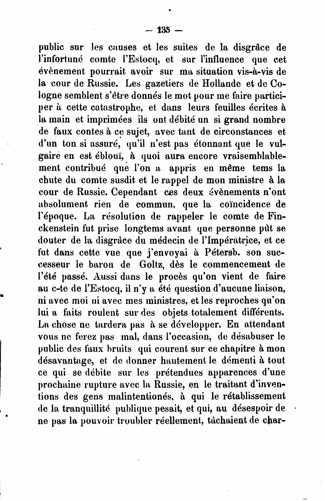 l'infortund comte l'Estocq, et sur l'intluence que cet