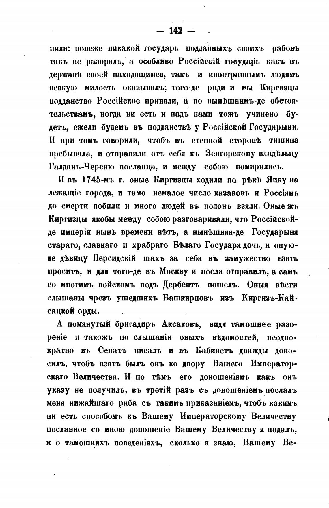 И въ 1745-мъ г. оные Киргизцы ходили по prbk'l; Яику на