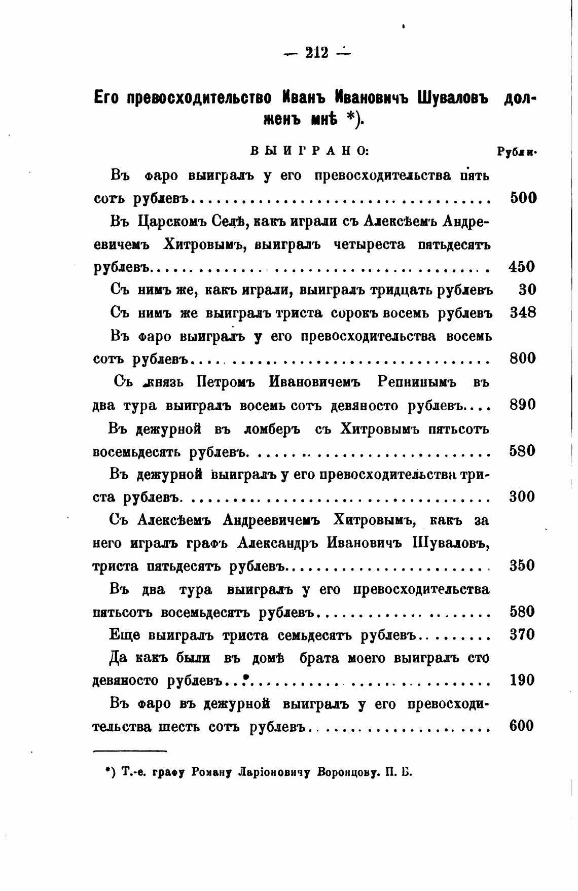 Съ нимъ же, какъ играли, выиградъ тридцать рублевъ
