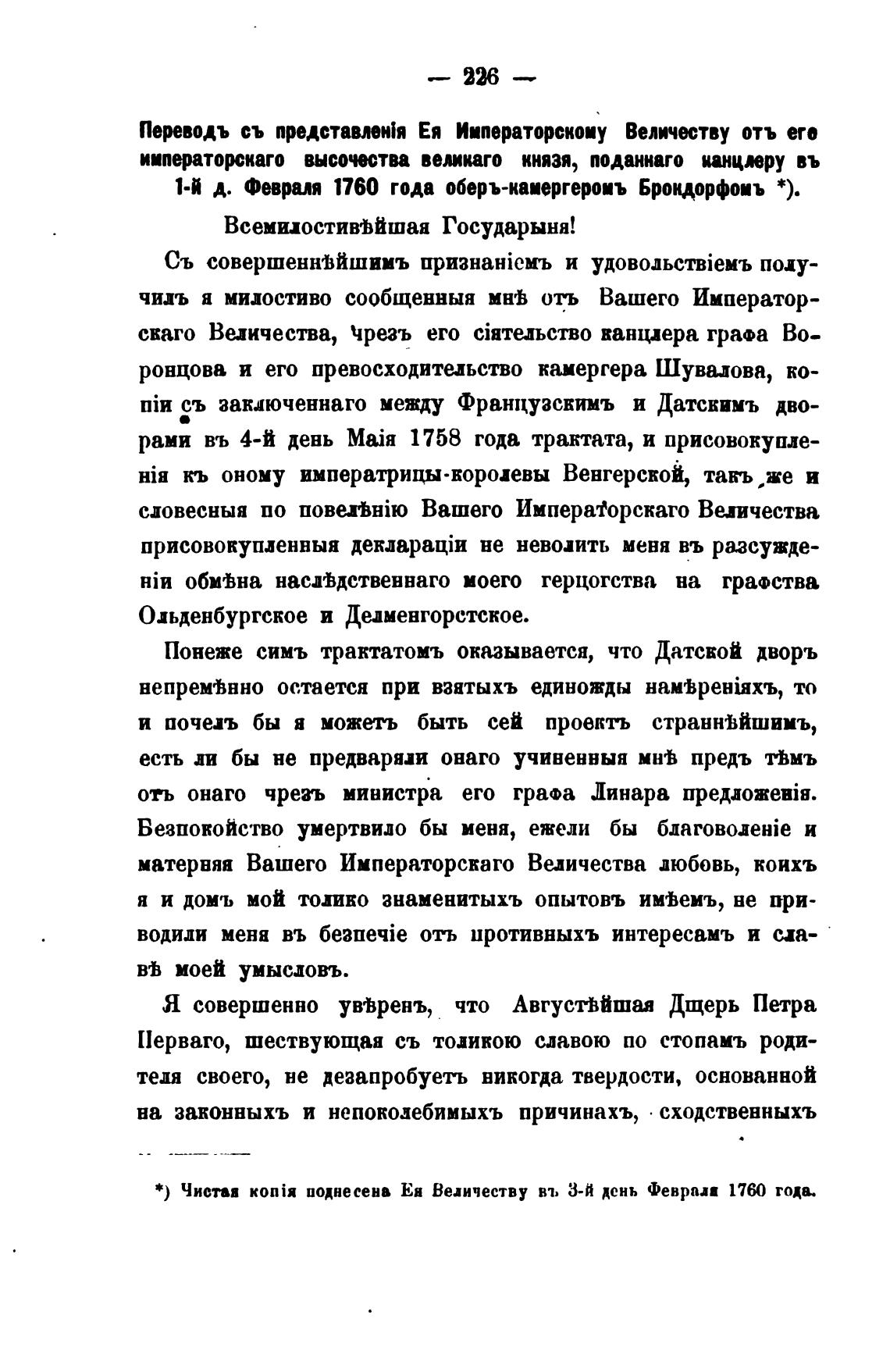 *) Чистая поднесена Ея Величеству въ 3-й день Феврали года.