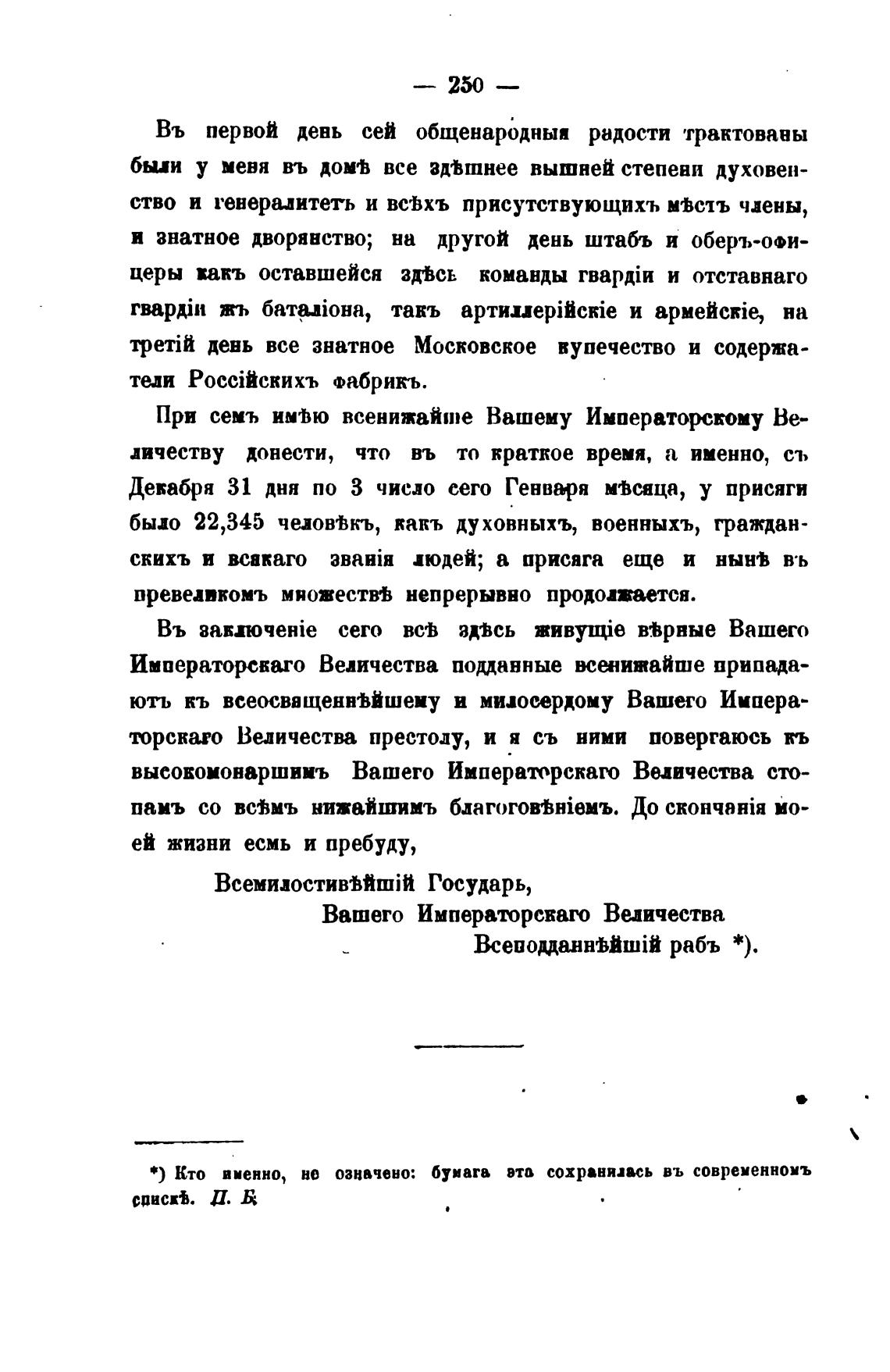 *) Кто именно, но означено: бумага эта сохранялась въ современномъ
