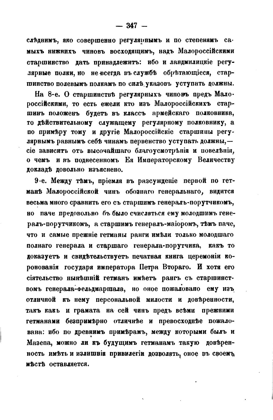 что и самые npeTHie гетманы ранги имвли только мододшаго