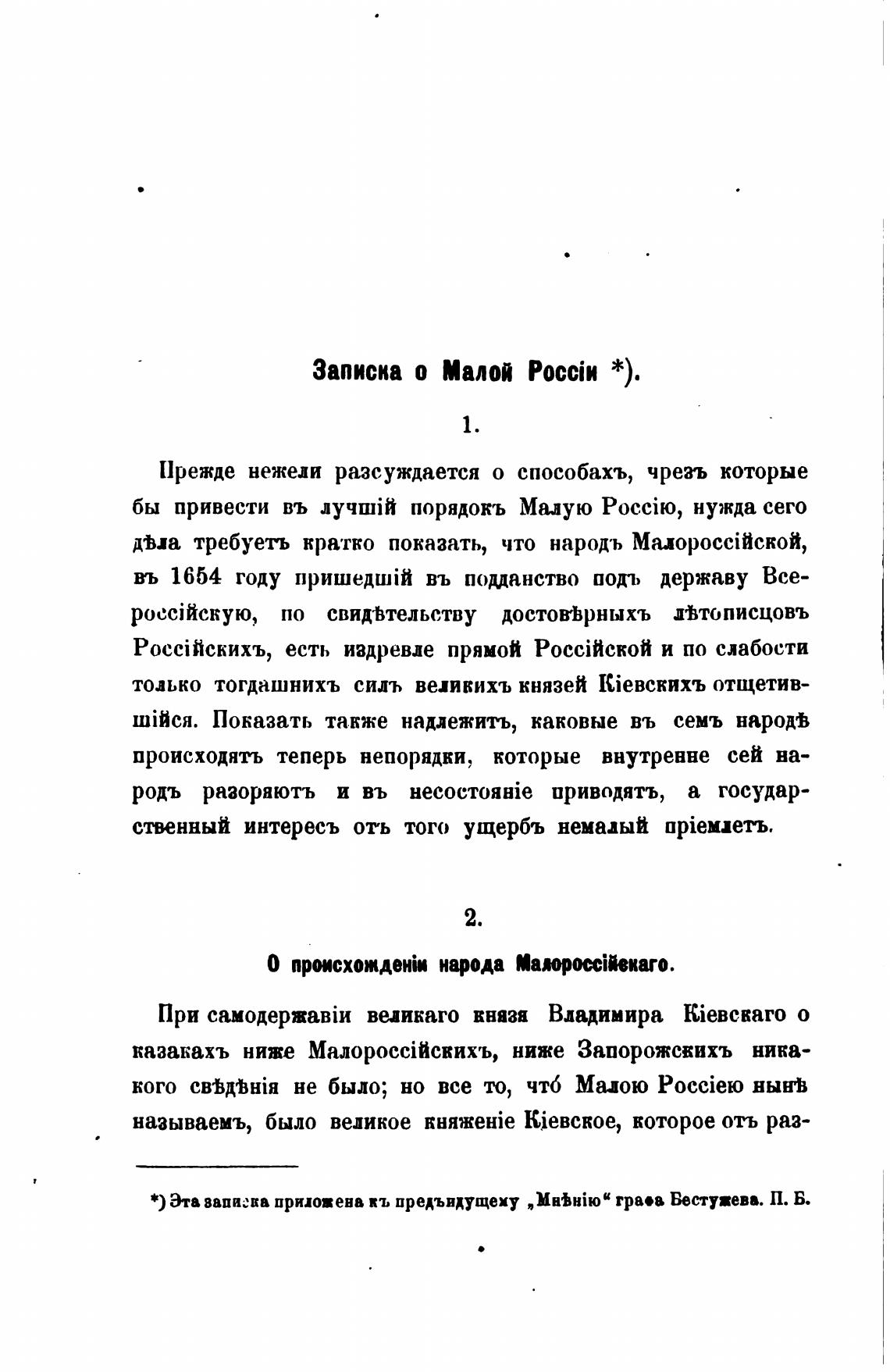 Записка о Малой PocciH *).