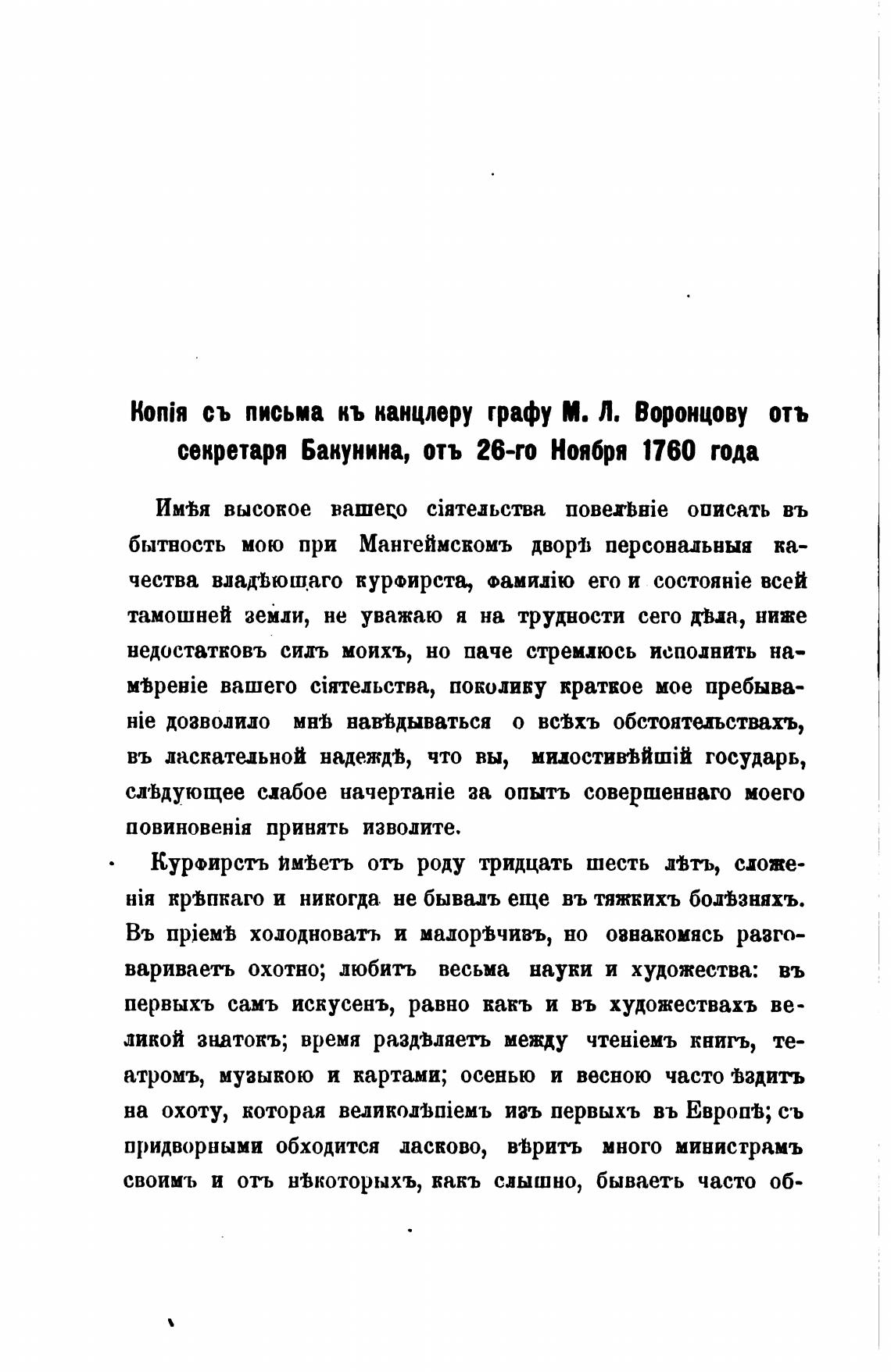 Ко:јя съ письма кь канцлеру графу М. Л, Воронцову отъ