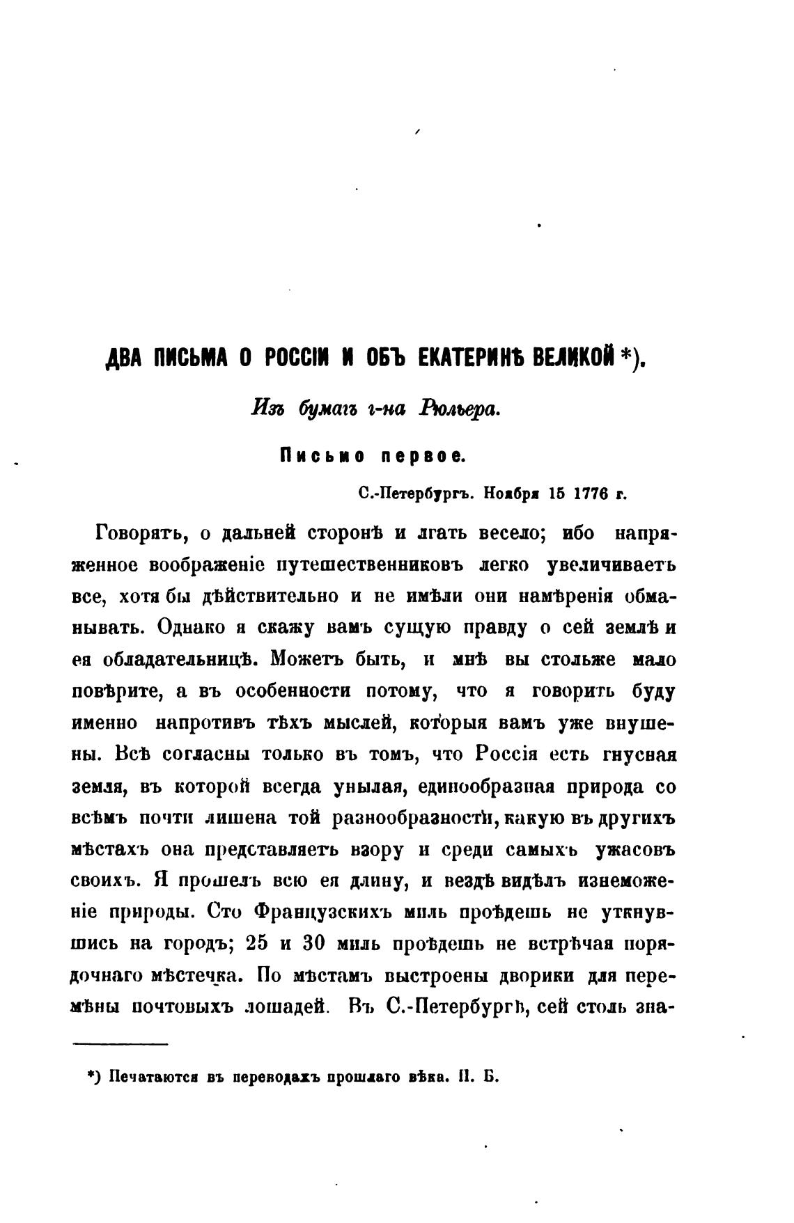 ДВА ПИСЬМА О РОССIИ И ОБЬ ЕКАТЕРИНБ ВЕЛИКОЙ