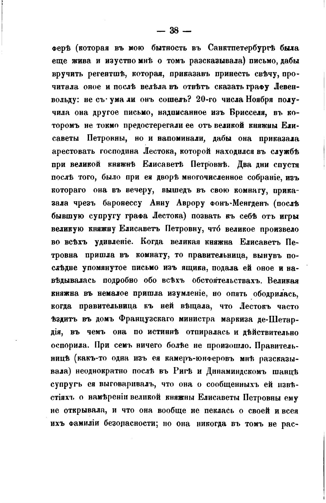 бывшую супругу графа Лестока) позвать кь себ% отъ игры