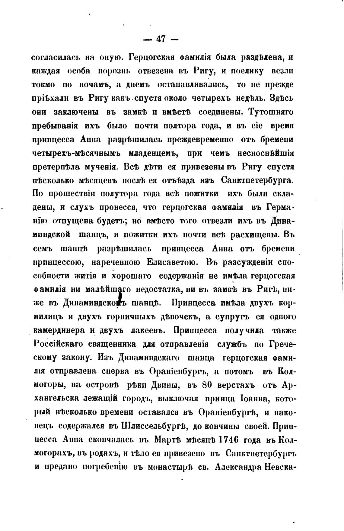 нецъ содержался въ Шлиссельбургв, до кончины своей. Прин-
