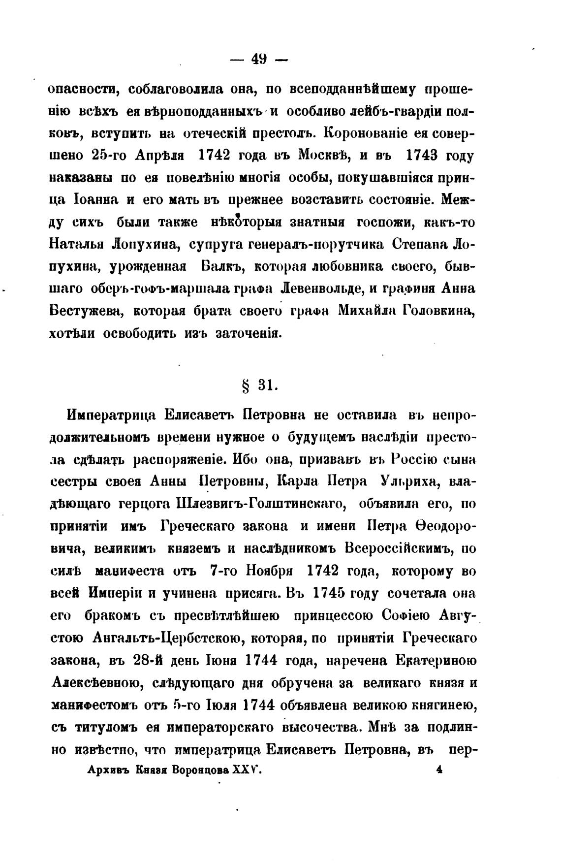 но изв%стпо, что императрица Елисаветь Петровна, въ пер-