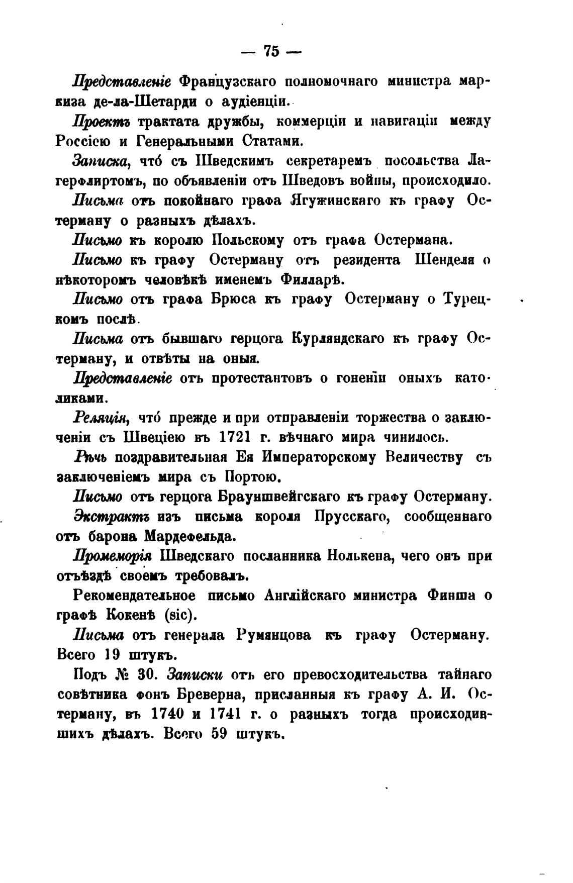Письмо кь графу Остерману отъ резидента Шенделн о