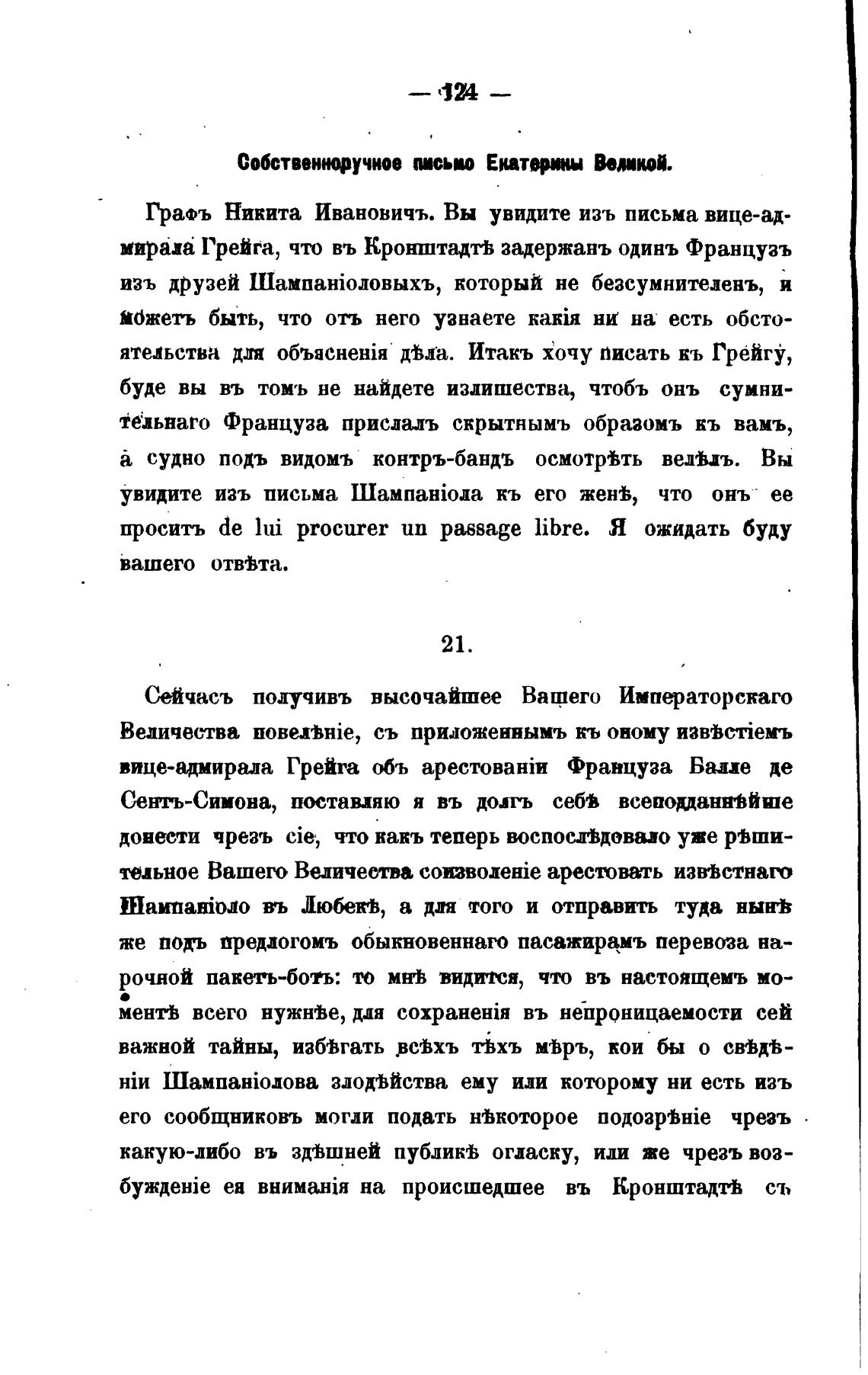 прап Грейга, что въ Кронштадтв задержань одинъ Французъ