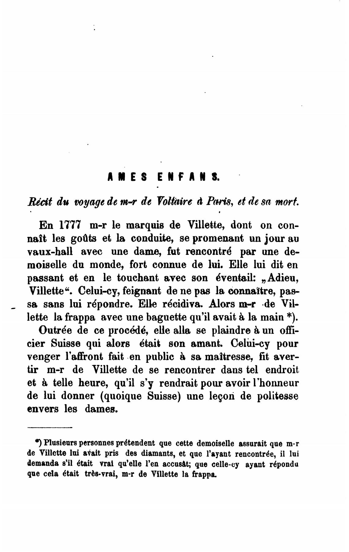 Rddt du voyage de m-r de Voltire d Раж, et de sa mort.