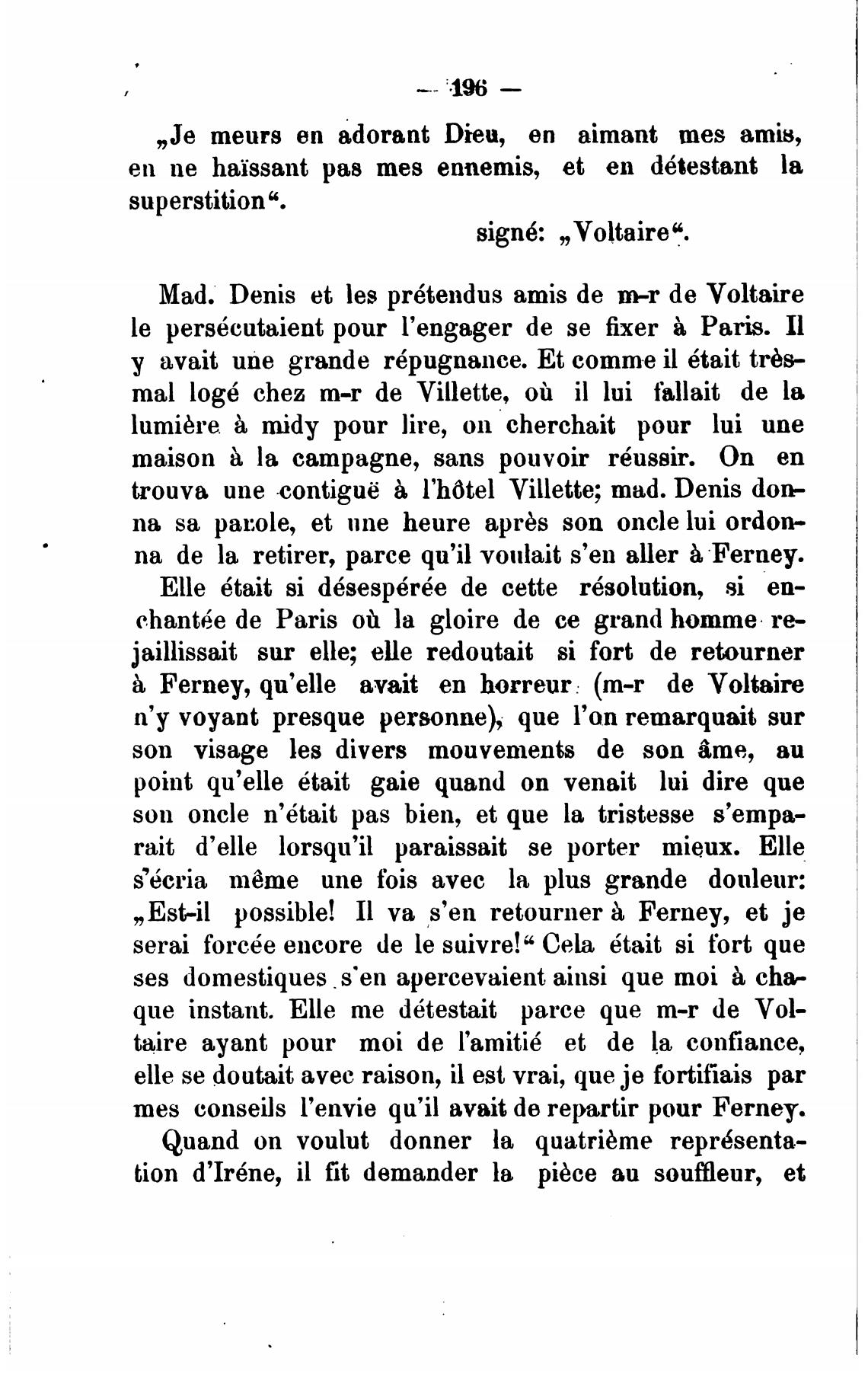 „Est-il possible! Il va s'en retourner Ferney, et је