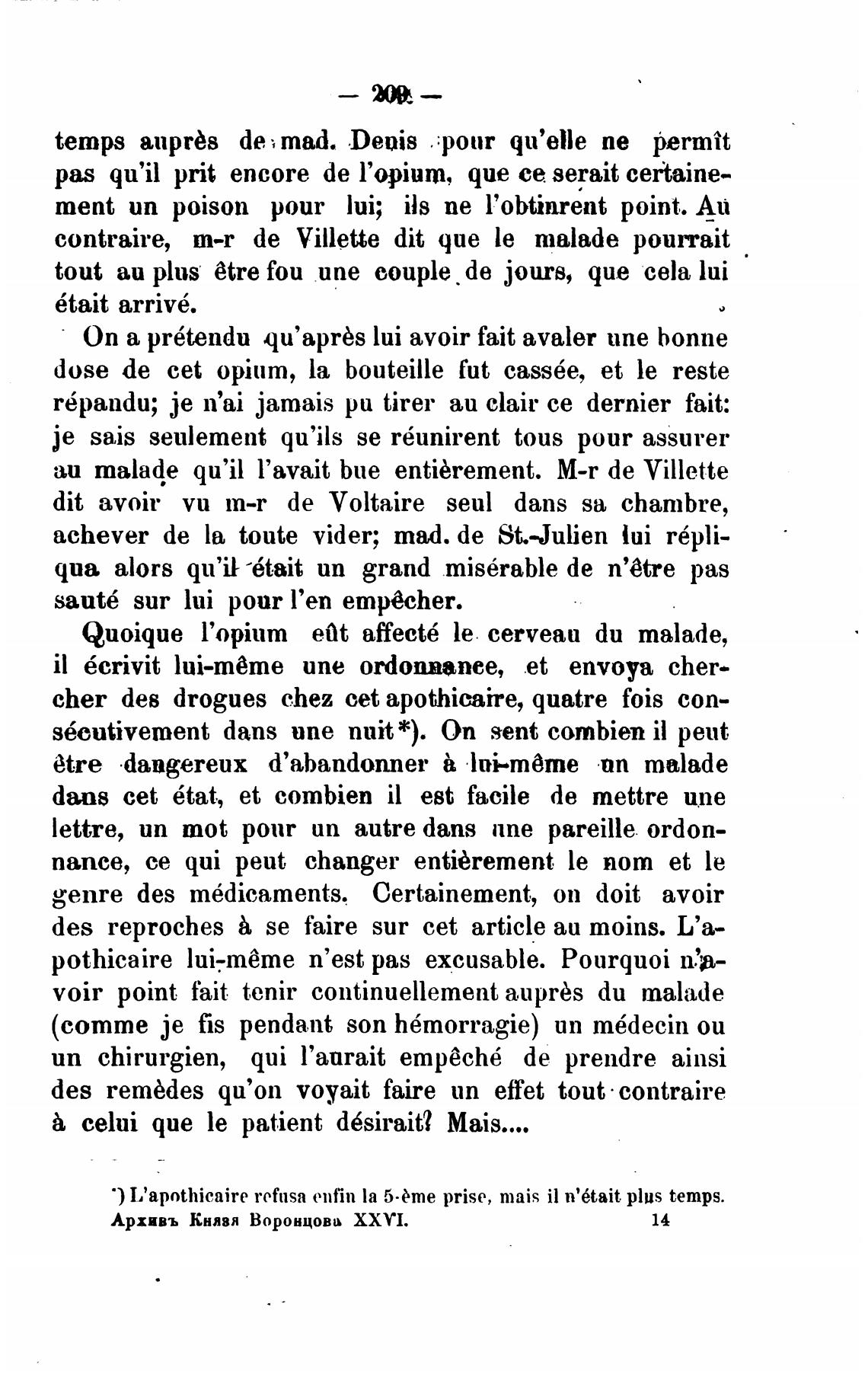 dit avoir vu m-r de Voltaire seul dans sa chambre,