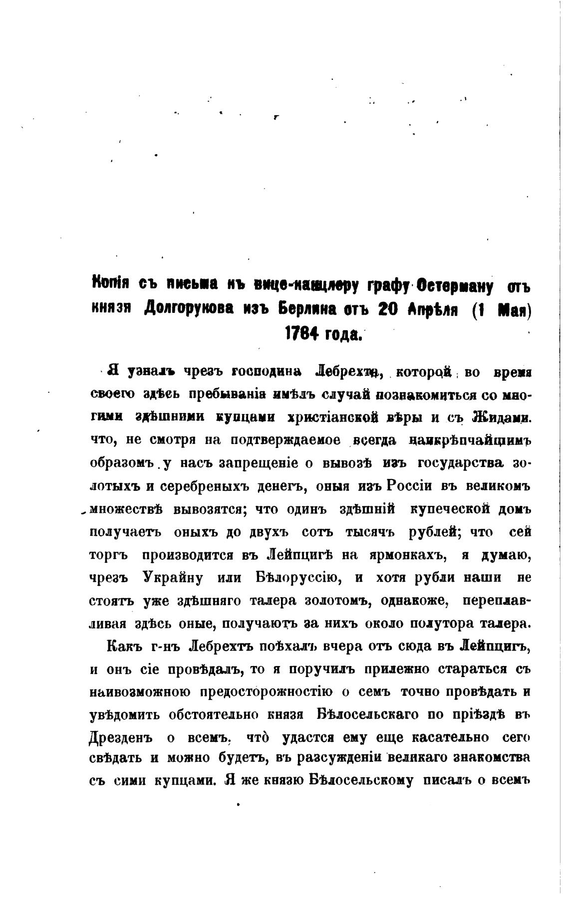 князя Долгорукова изъ Берлина отъ 20 Апр%ля (1 Мая)