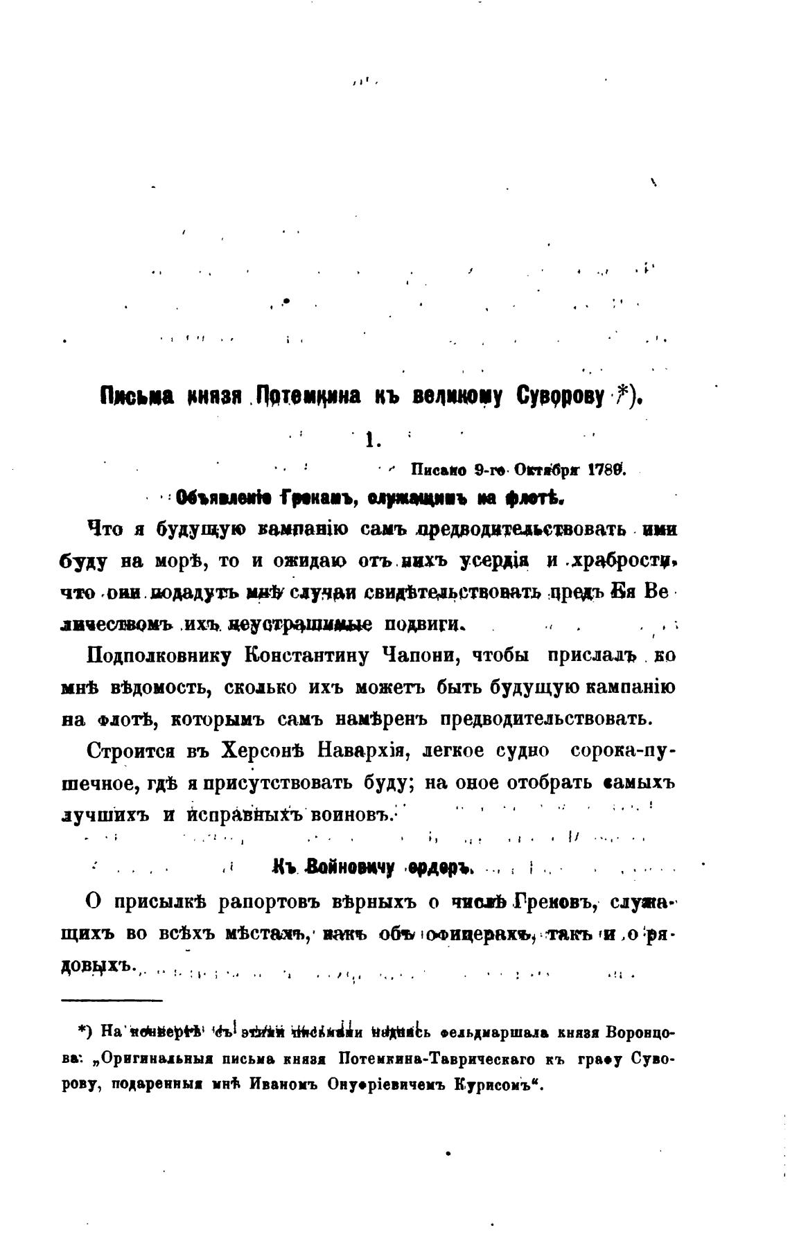 вт. „Оригиныьныа письма кннви Потемкинв-Твврическаго кь гра.у Суво-