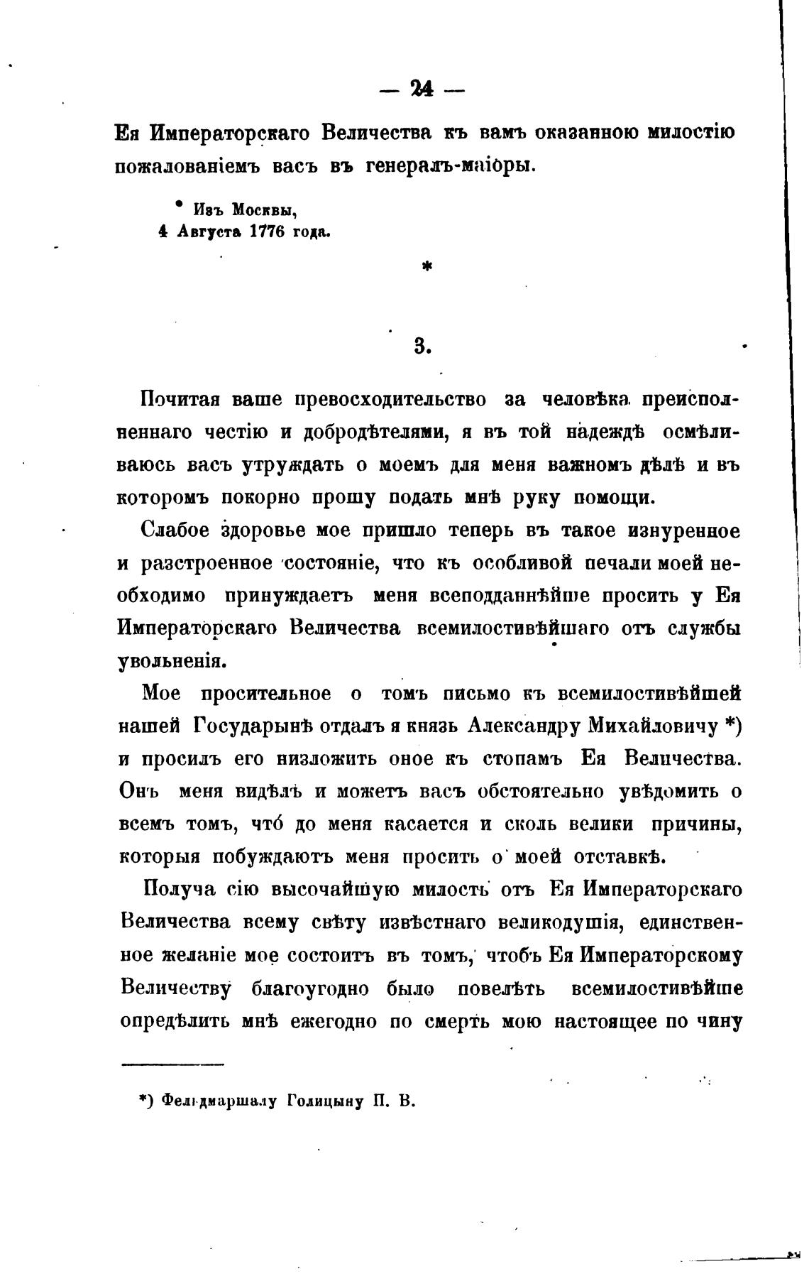 *) Фельдмаршалу Голицыну П. В.