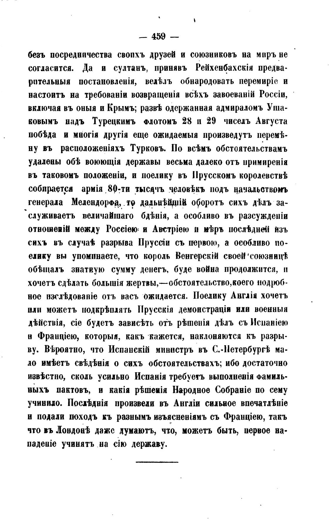 безъ посредничества свопхъ друзей и союзниковъ на миръ не