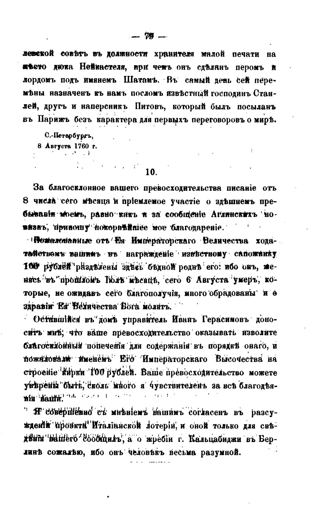 8 Августа 1760 г.
