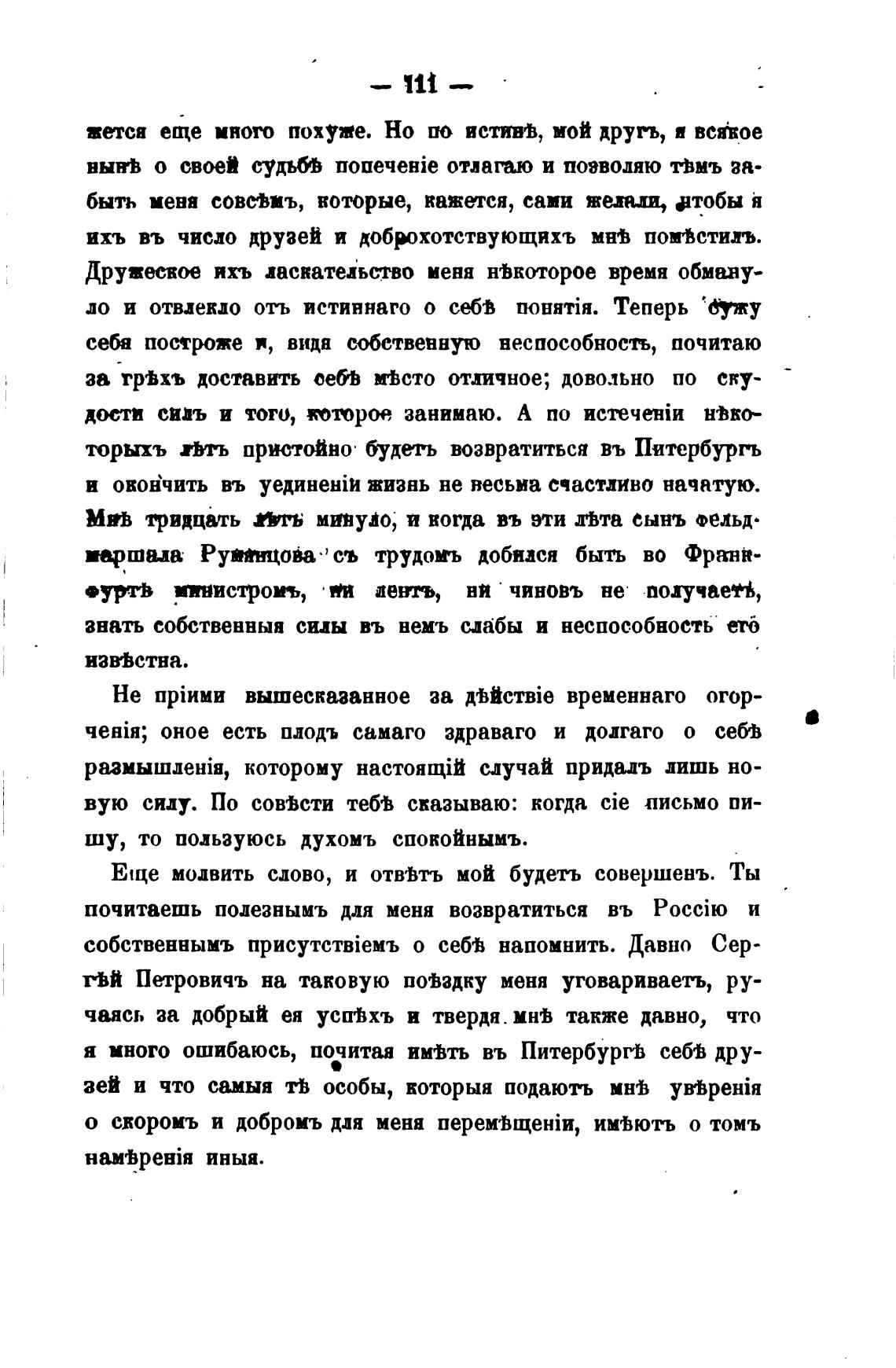 я много ошибаюсь, почитая имјть въ Питербург•Ь себ'В дру-