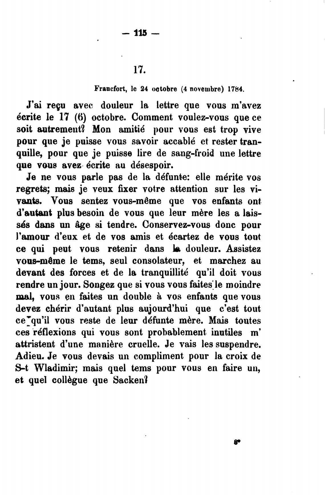 Francfort, le 24 octobre (4 novembre) 1784.