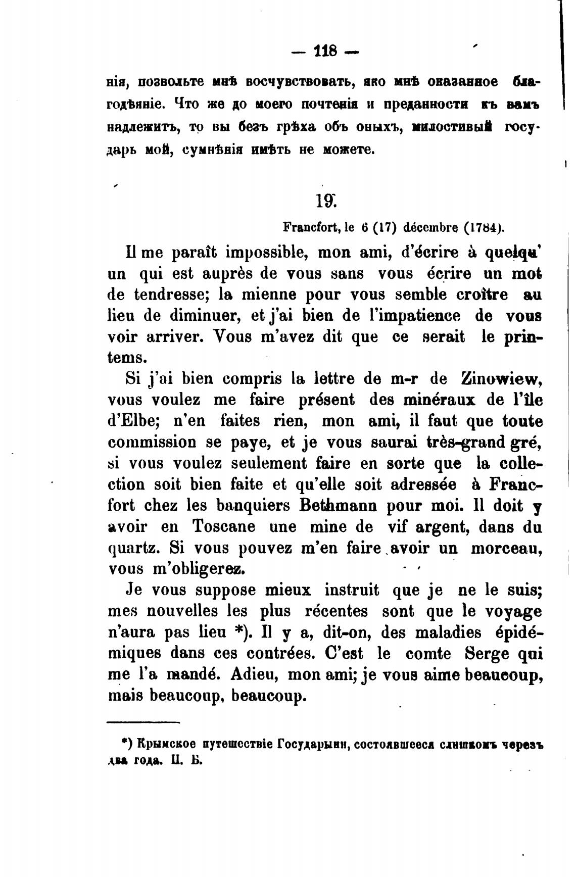 Francfort, le 6 (17) d6cembre (1784).